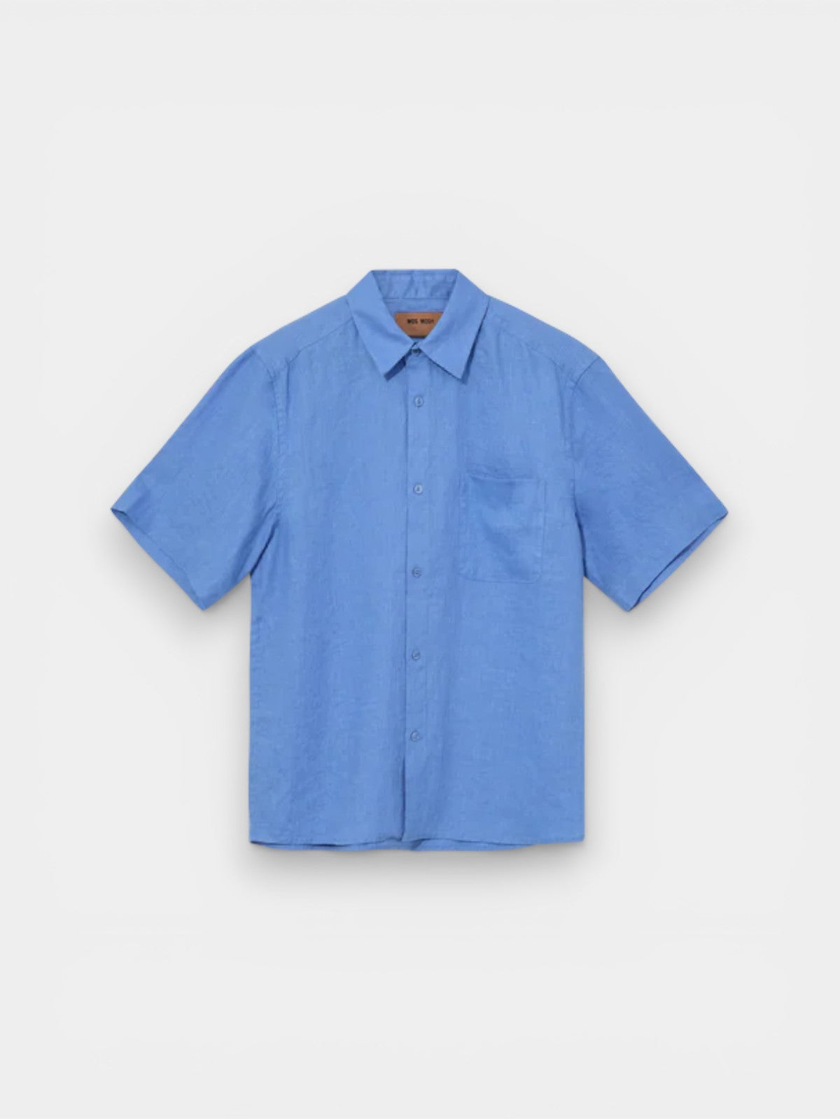 Theo Linen Stripe Shirt - Silver Lake Blue