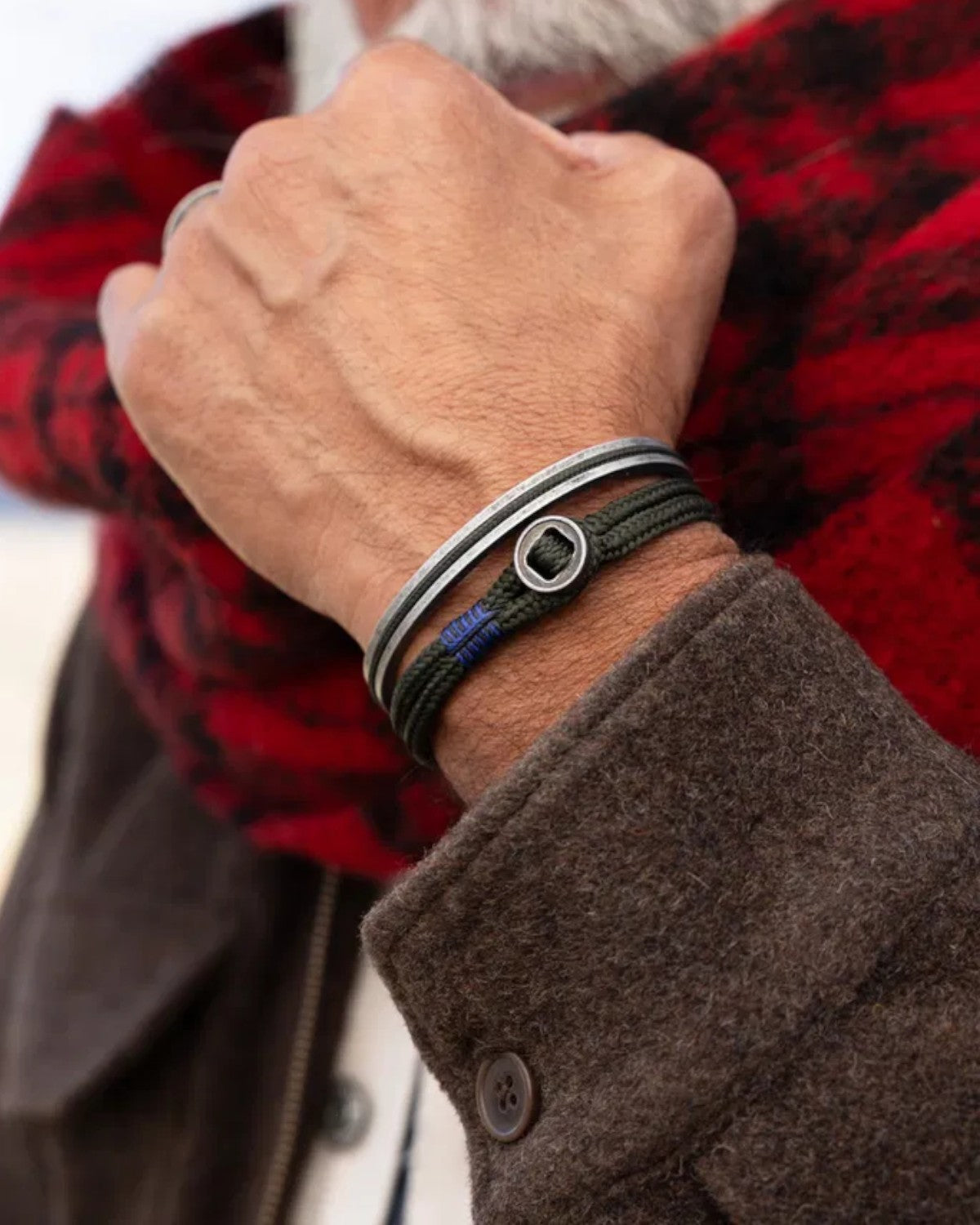 Don Dino i Army er skabt af slidstærk marineline og fuldendt med en stilren lås i rustfrit stål, som gør det nemt at tage armbåndet af og på. De dobbelte liner giver et markant men stadig afdæmpet udtryk, der fungerer både alene og i kombination med andre armbånd. Armbåndet forener rå styrke med raffinement og tilfører karakter til dit look.