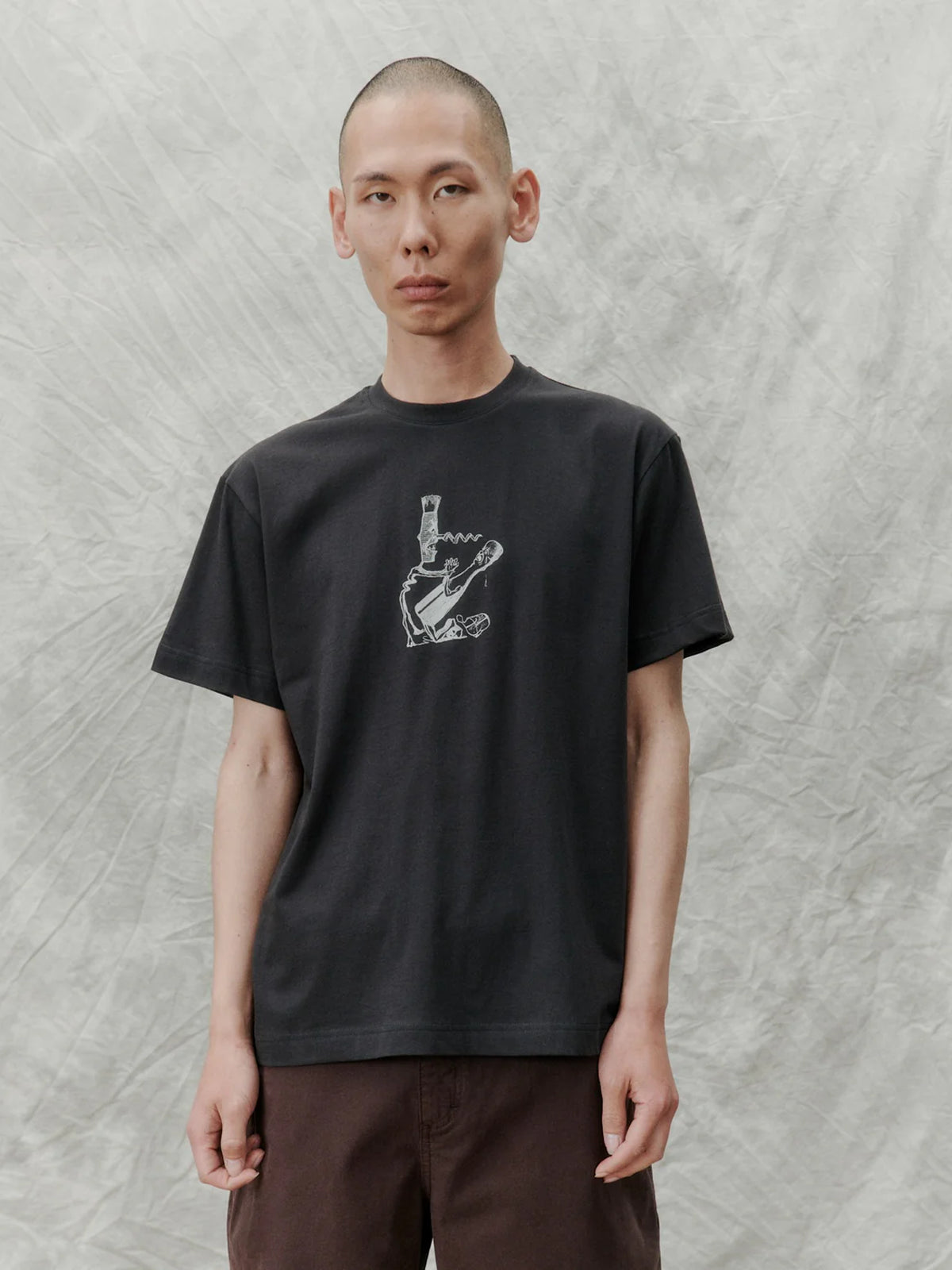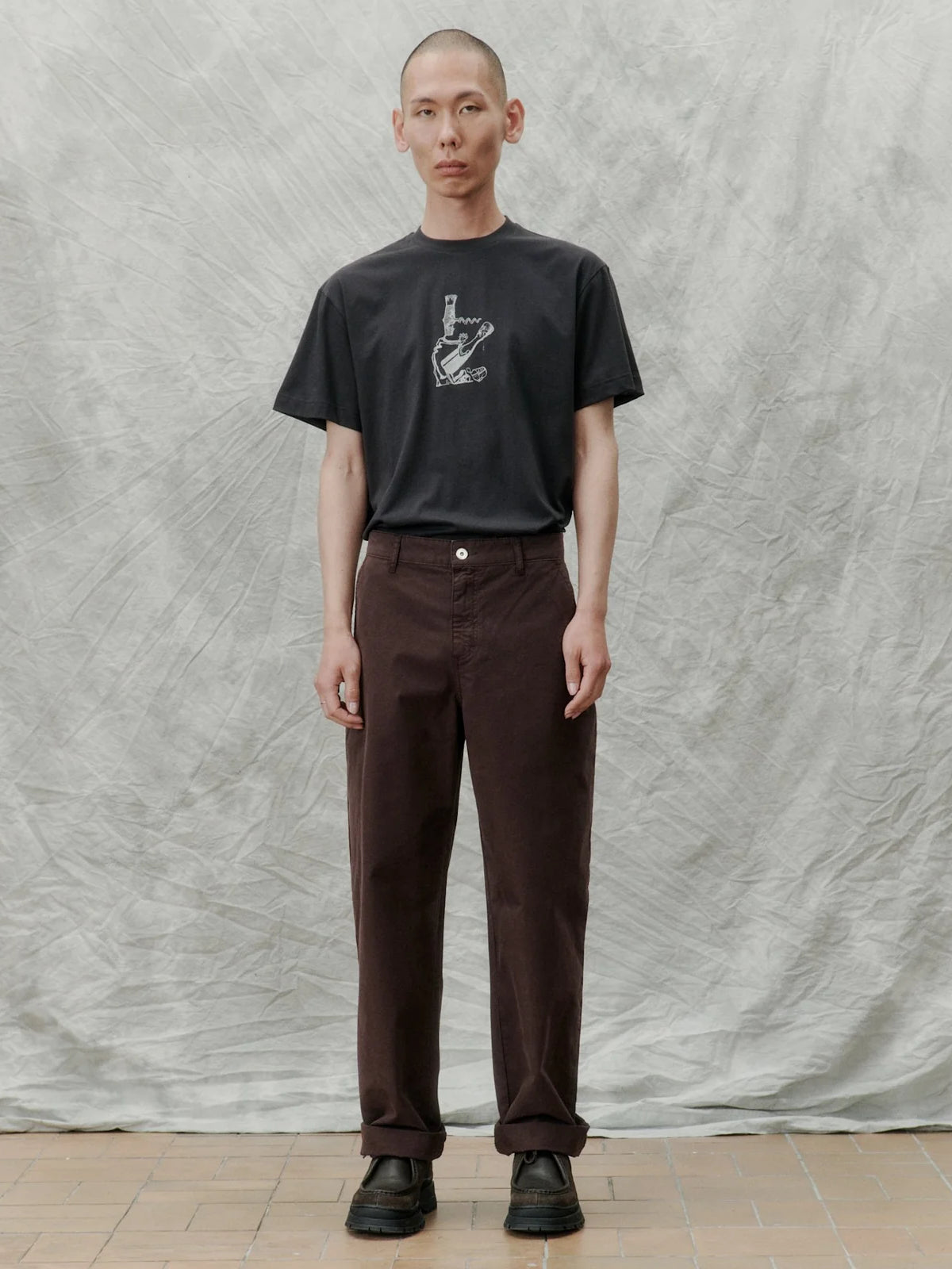 Denne bløde og børstede t-shirt er fremstillet af 100% økologisk GOTS-certificeret bomuld og har et stilrent print på fronten. Farven er koksgrå, og stoffet er produceret i Tyrkiet, hvor t-shirten også er fremstillet.