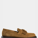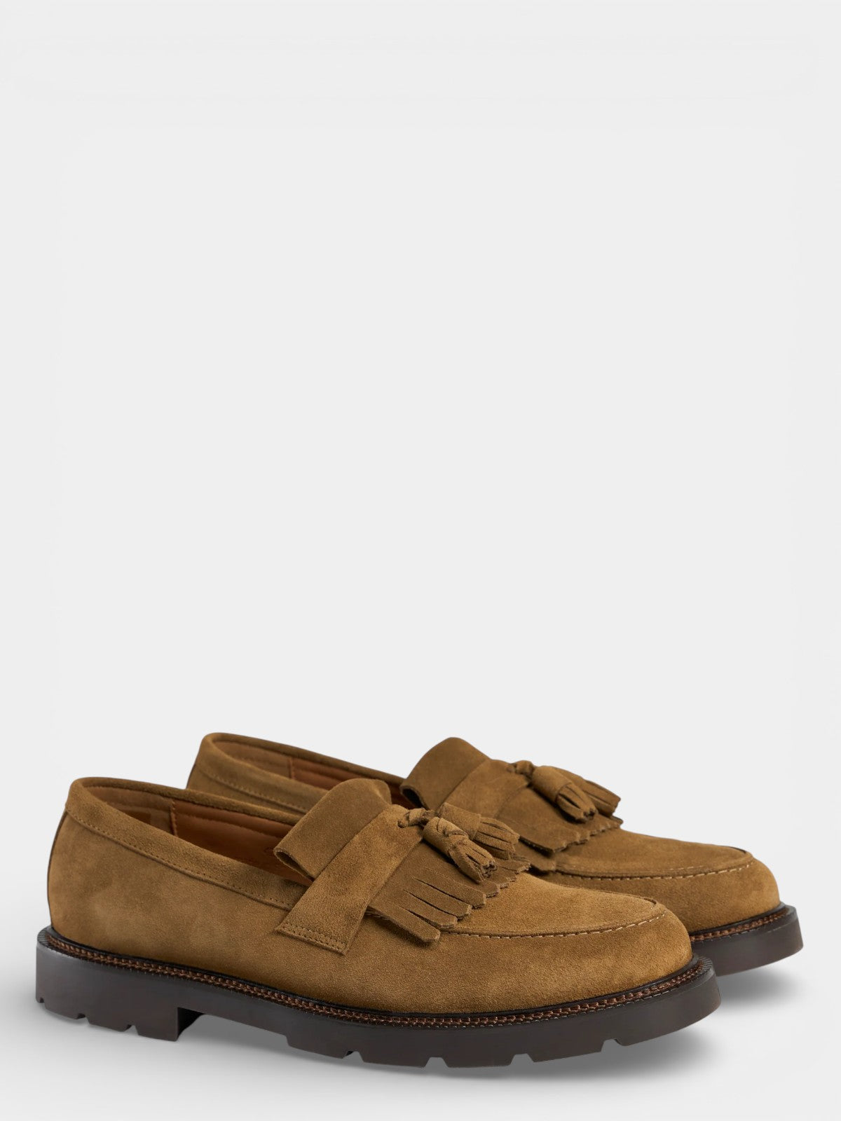 Loafer-modellen 61351 i farven camel fra Ahler Shoes er en klassisk og elegant herresko, designet med et tidløst slip-on design, der gør den nem og komfortabel at tage på. Skoens overdel er udført i blødt ruskind, hvilket giver et stilfuldt udtryk og en luksuriøs følelse, mens foring og indersål i kalvelæder sikrer høj komfort og god holdbarhed. Den robuste ydersål i gummi bidrager til et stabilt og sikkert fodfæste. Kombinationen af kvalitetsmaterialer og et minimalistisk skandinavisk design gør denne loafer alsidig og velegnet til både hverdag og mere formelle anledninger.
