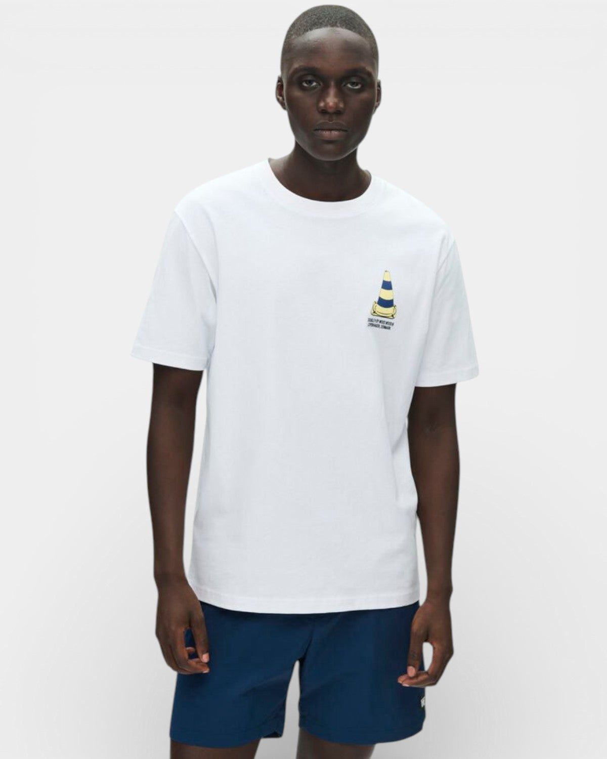Ace Cone Tee fra Wood Wood er en klassisk T-shirt med et legende og grafisk udtryk, der kombinerer streetwear med brandets karakteristiske humor. T-shirten har en afslappet pasform og korte ærmer, som giver god komfort og gør den nem at bruge i hverdagen. På brystet ses et diskret grafisk print, mens ryggen er prydet med et større motiv, der tilfører et markant visuelt element og skaber blikfang. Materialet føles blødt og behageligt mod huden, hvilket gør Ace Cone Tee ideel til både afslappede outfits og som et statement-piece i garderoben. Det enkle design kombineret med den iøjnefaldende grafik gør T-shirten alsidig og let at style sæson efter sæson.