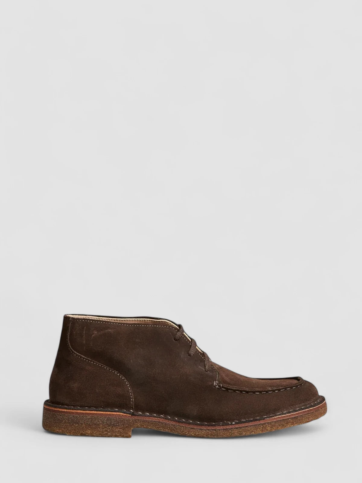 Astorflex Dukeflex Shoes er håndlavet i Mantova, Italien, hvor de første chukka boots blev skabt i starten af 1900-tallet. Skoene er fremstillet af vegetabilsk garvet ruskind med en opdateret tåhætte og farvet gennem en naturlig proces, der giver overdelen et unikt udtryk. Med indersål og for i kalvelæder og ruskind, tekstilsnørebånd og slidstærke crepesåler af økologisk naturgummi tilbyder de både komfort og kvalitet. Pasformen er normal, så vælg din sædvanlige størrelse.