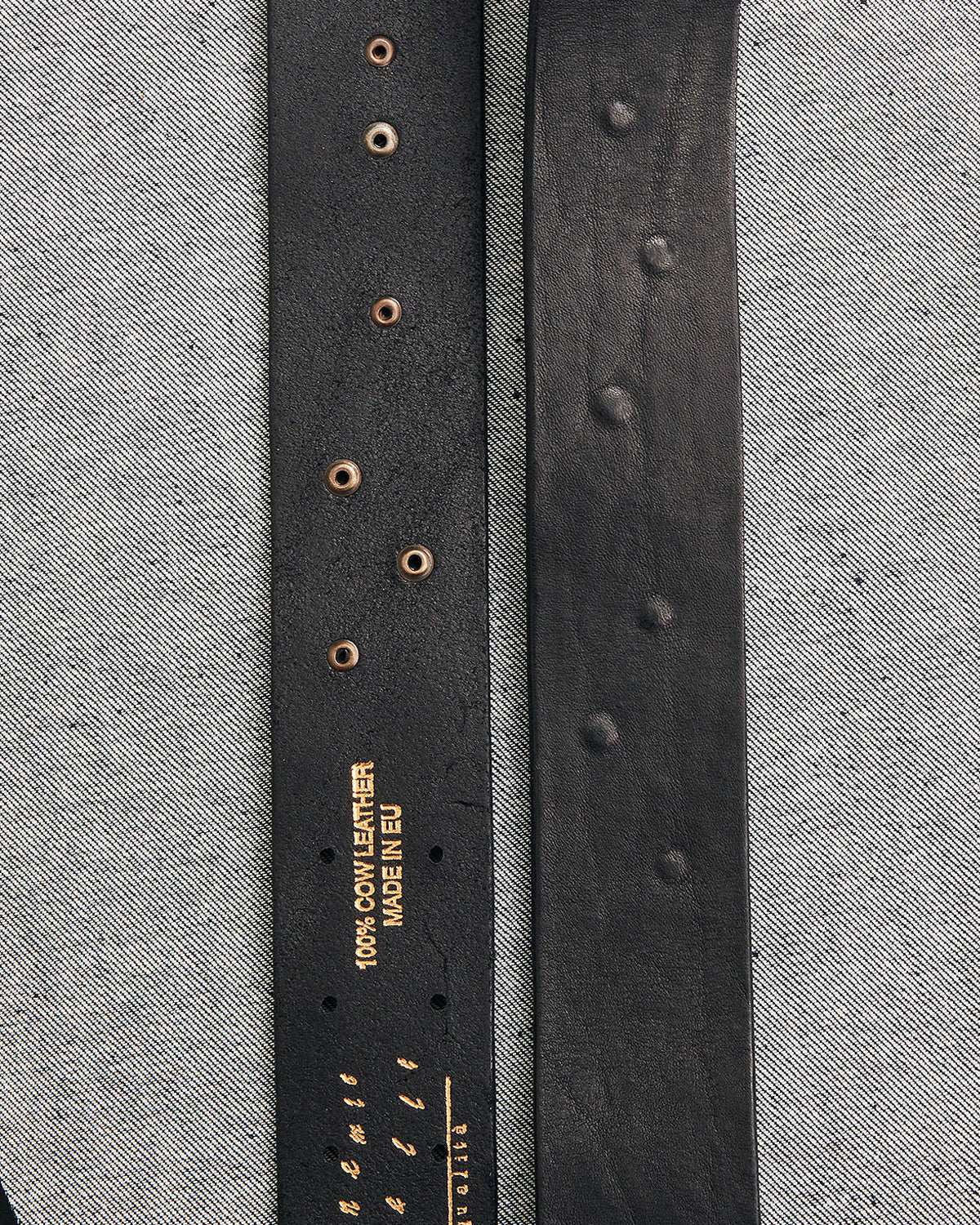 Cintura Belt er fremstillet af kraftigt okse læder og er blevet behandlet med en særlig vintage-finish for et raffineret og autentisk udseende. Inspireret af vintage militærbælter, bæltet er udstyret med en maskulin dobbelt spænde, præget nitter og håndsyet syning.