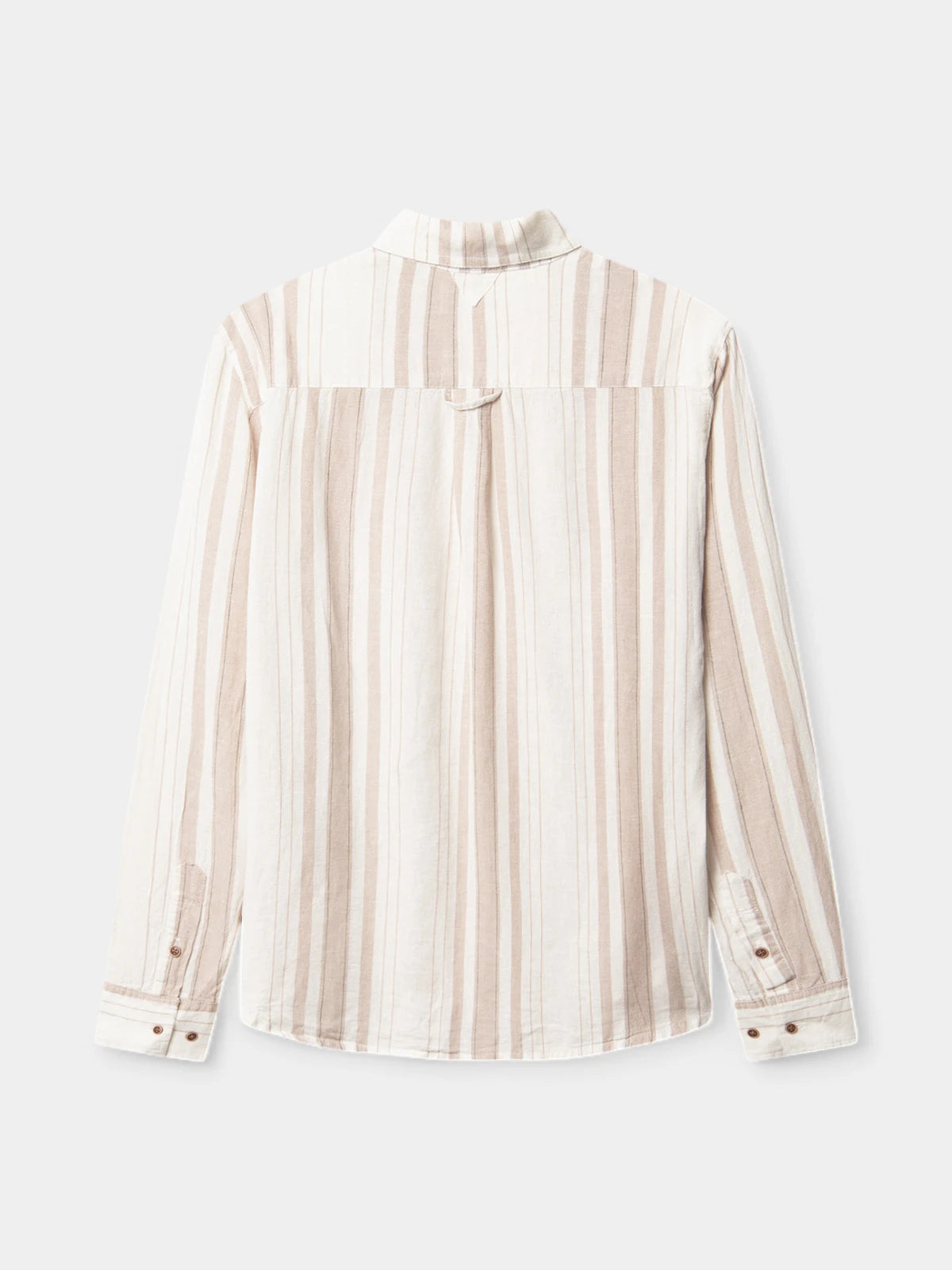 Sven Regular Lino Stripes LS Beige Stripe fra Gabba er en langærmet skjorte fremstillet af en let og åndbar hørblanding, der sikrer komfort hele dagen. Den har et klassisk stribet mønster i beige nuancer, hvilket giver et tidløst og alsidigt look.Skjorten er designet med en regular fit pasform, der tilbyder en afslappet, men stadig stilfuld silhuet. Den har en traditionel knaplukning foran og en klassisk krave, hvilket gør den velegnet til både formelle og uformelle lejligheder. De lange ærmer afsluttes med justerbare manchetter, der giver mulighed for personlig tilpasning. Et diskret Gabba-logo er broderet på brystlommen, hvilket tilføjer et subtilt brand touch.