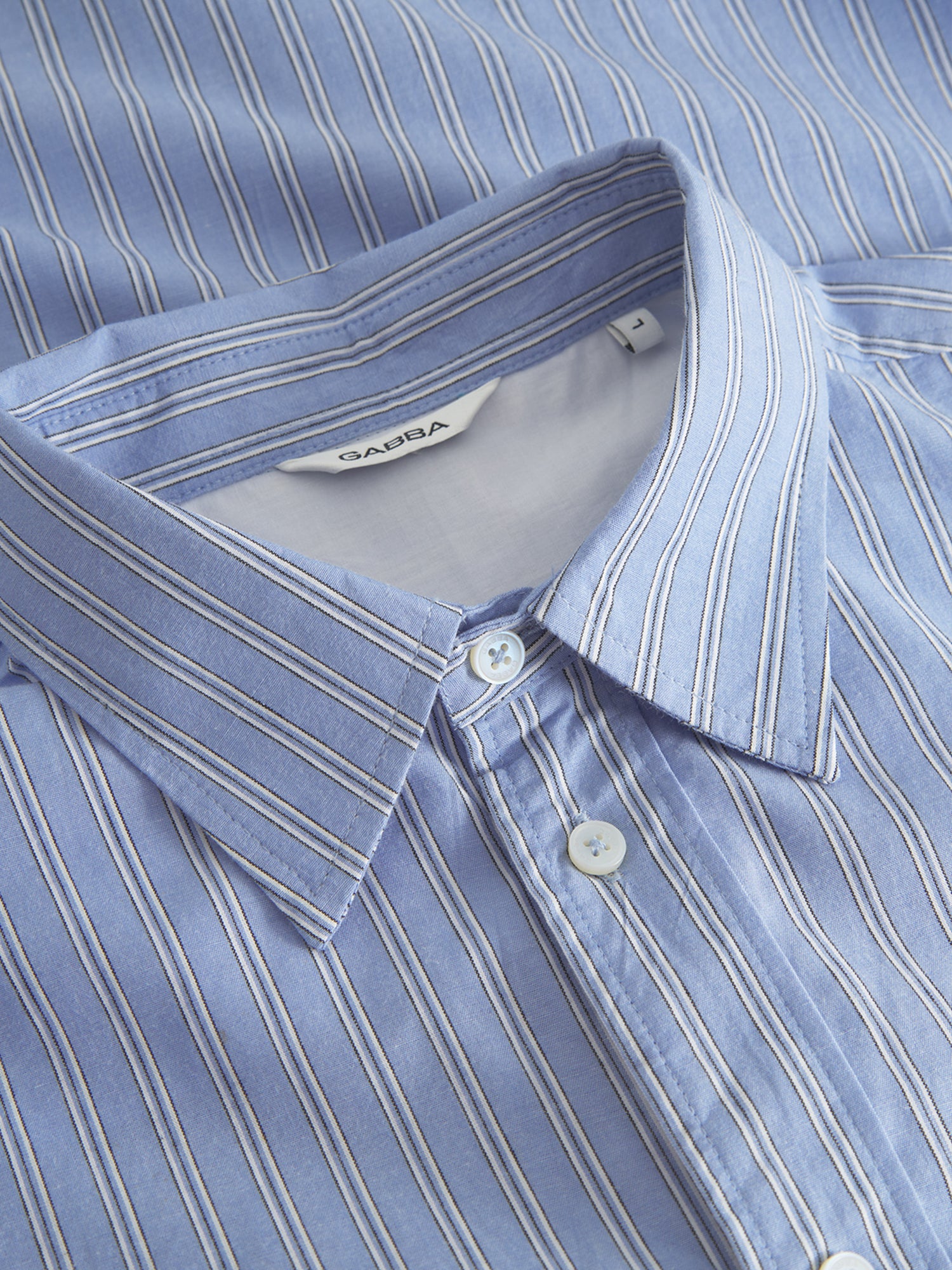 Gabba Sven Reg LS Shirt i blå striber er en tidløs klassiker, der kombinerer elegance med afslappet lethed. Skjorten er fremstillet i en let bomuldskvalitet, der sikrer komfort og åndbarhed hele dagen.