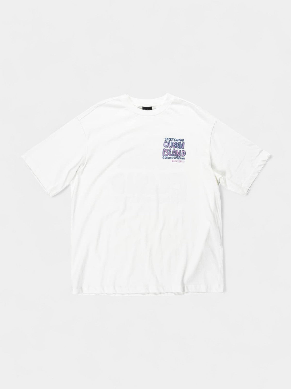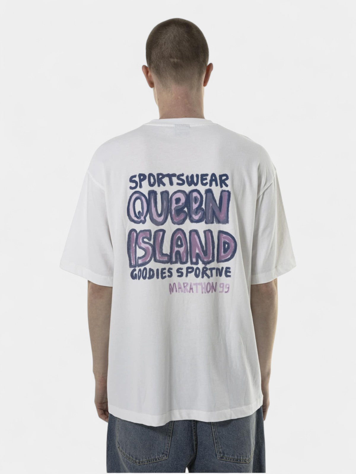 QUEEN ISLAND TEE er den perfekte kombination af afslappet komfort og moderne attitude. Den rene hvide farve og ribkanten i halsen giver et klassisk udtryk, mens det enkle print på brystet og det markante motiv på ryggen tilfører personlighed og kant. Med sit tidløse design og den bløde bomuldskvalitet fremstillet i Portugal er denne T-shirt skabt til at følge dig gennem sæsonens mange øjeblikke – fra hverdagslooks til afslappede dage i solen.