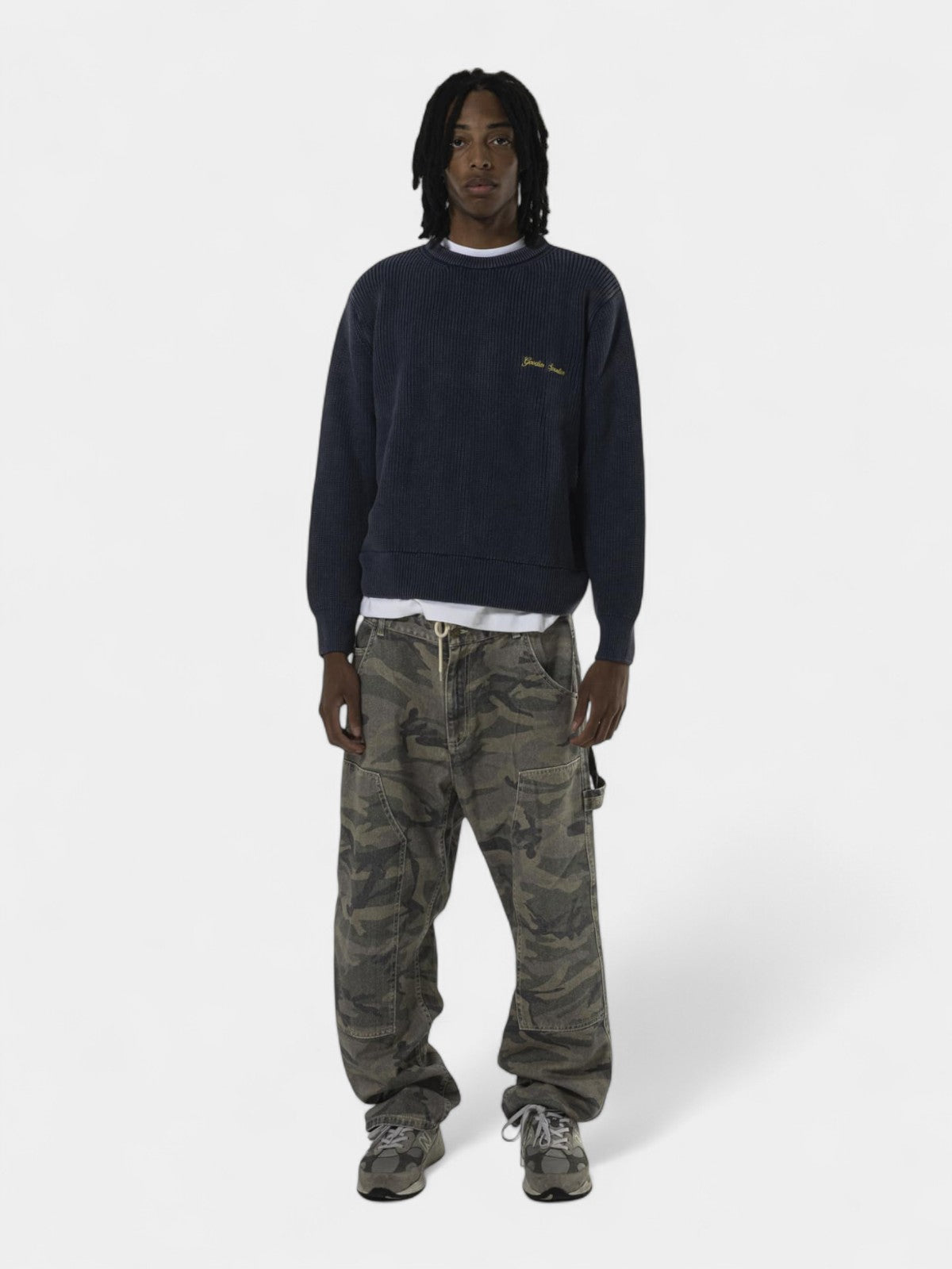 Washed Insignia Premium Knit er en navyblå crewneck, der kombinerer klassisk design med moderne detaljer. Den boxy pasform giver et afslappet og stilrent udtryk, mens det kontrastfarvede broderi på brystet tilføjer et grafisk touch. Fremstillet i 100 % bomuld i Portugal, tilbyder denne striktrøje både komfort og holdbarhed. Perfekt til at tilføre dit outfit et personligt præg, uanset om du er på farten eller slapper af i weekenden.