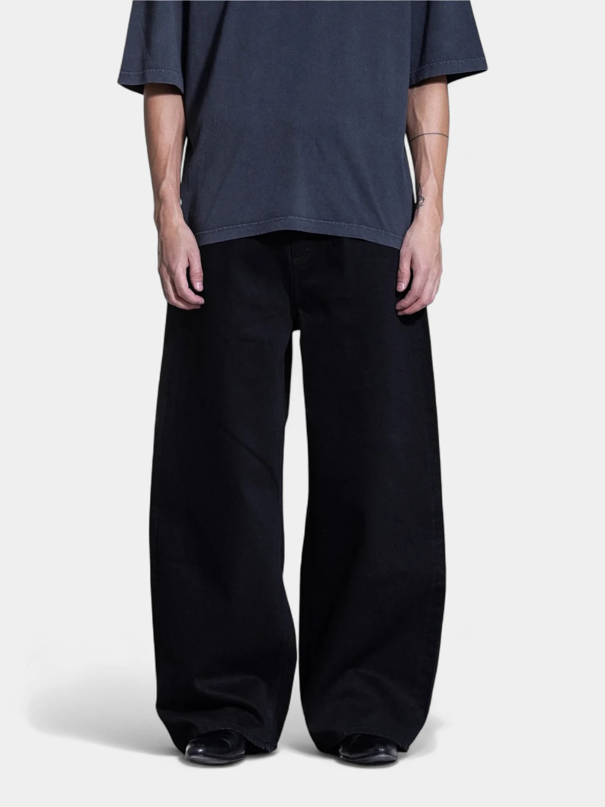 Baggy Denim Jeans fra Han Kjøbenhavn i sort vasket look har en løs pasform, mid waist og brede ben for et afslappet udtryk. Klassisk 5-pocket design med sølvdetaljer og læderpatch bagpå fuldender det rå look. Fremstillet i bomuld med genanvendte fibre for både stil og komfort.
