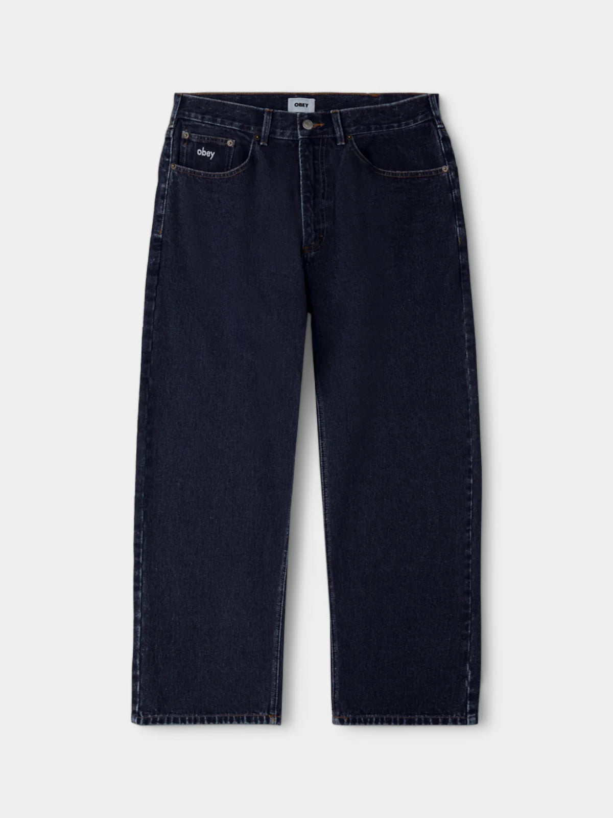 Obey Bigwig Baggy Denim er en afslappet denimarbejdsbuks med en rummelig pasform og en benåbning på 20 tommer. Den er lavet af 100 % bomuld i kraftig 13,5 oz denim og har en let tilspidset silhuet. Bukserne er designet med en shank-knaplukning, lynlåsgylp, fem praktiske lommer samt et broderet logo på møntlommen og Obey Eyes-mærket på baglommen.