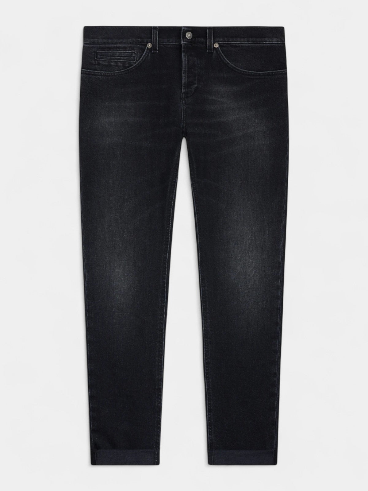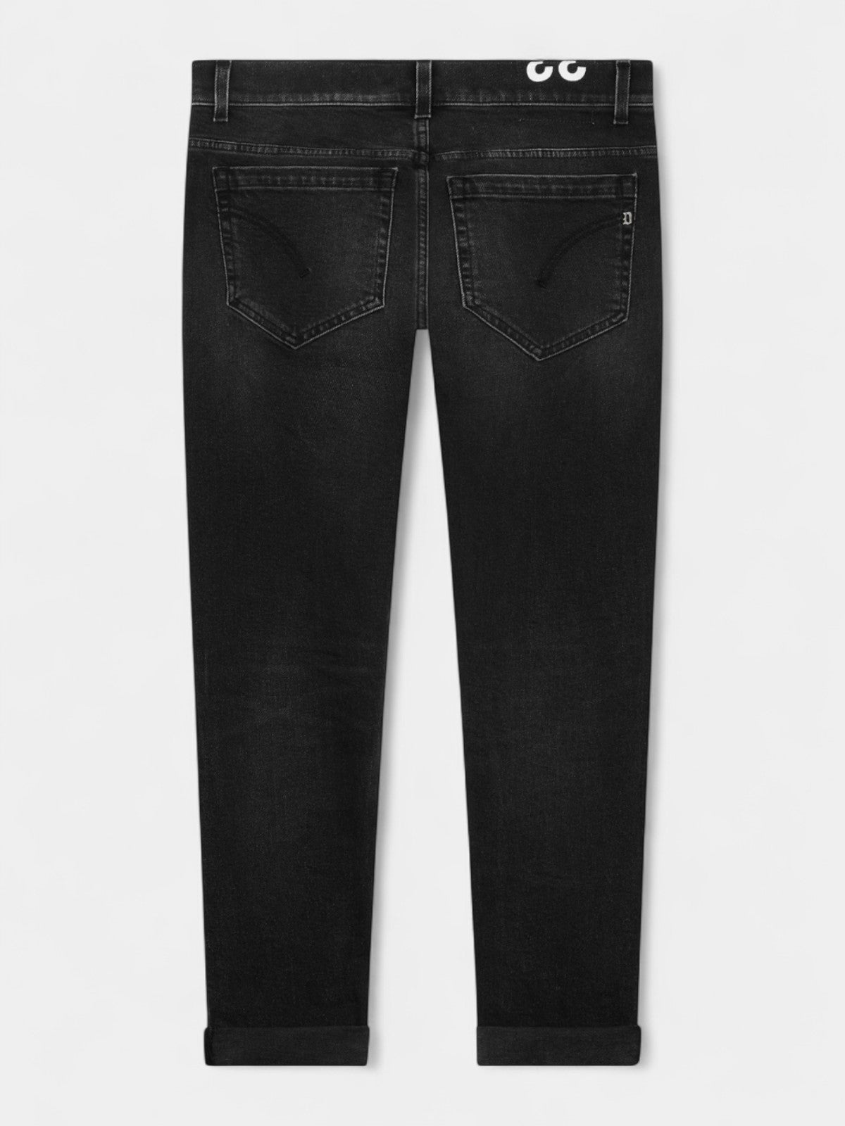 George Skinny Jeans er en skinny-fit jeans med lav talje og klassiske fem lommer, udført i sort 15 oz comfort stretch denim med clean wash. Den strømlinede pasform kombinerer komfort og bevægelighed, mens diskrete detaljer og Dondup-logoet giver et minimalistisk, stilrent udtryk.