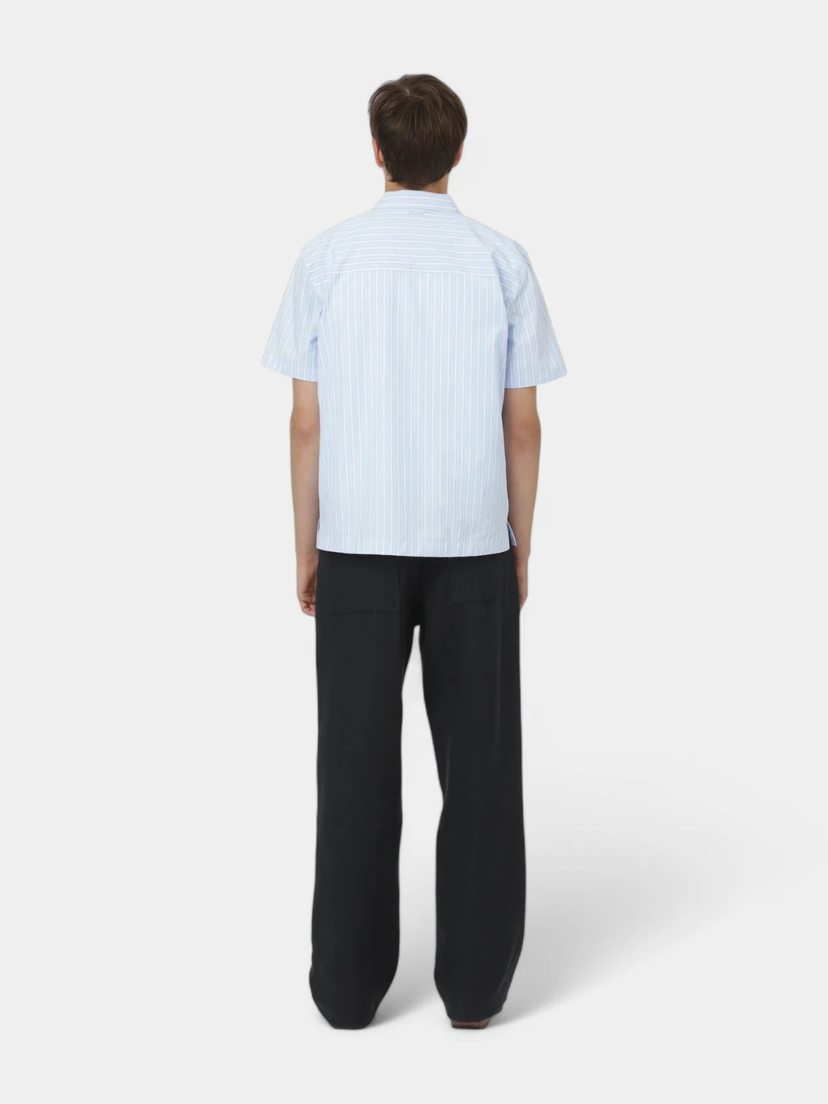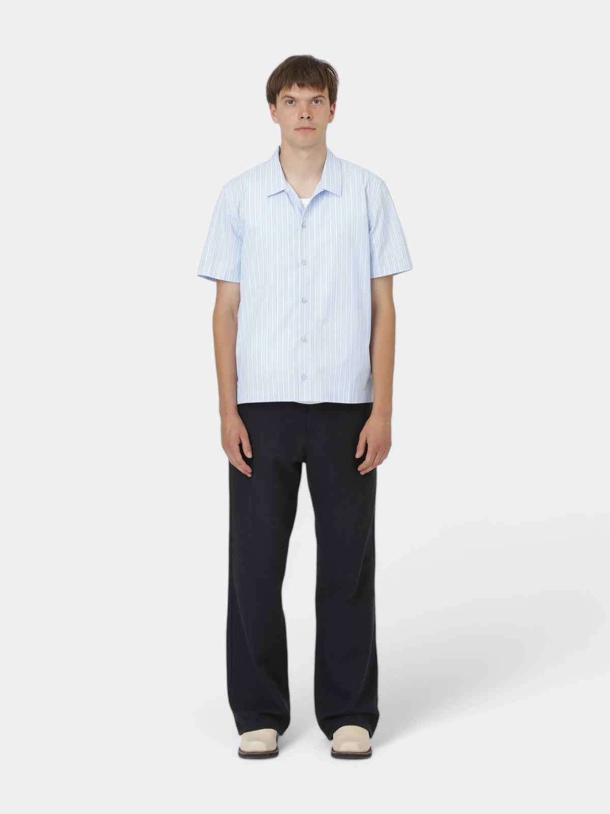 Kirk Stripe Shirt i blå er en stilren og let skjorte med et moderne udtryk. Den er fremstillet i et åndbart materiale, der sikrer høj komfort, og har en afslappet pasform, der gør den ideel til både hverdagsbrug og mere formelle anledninger. Det kortærmede design kombineret med den klassiske krave og gennemgående knaplukning giver et tidløst look, mens de fine striber tilføjer et elegant touch. Perfekt at style med både jeans og chinos for et afslappet, men velklædt udtryk.