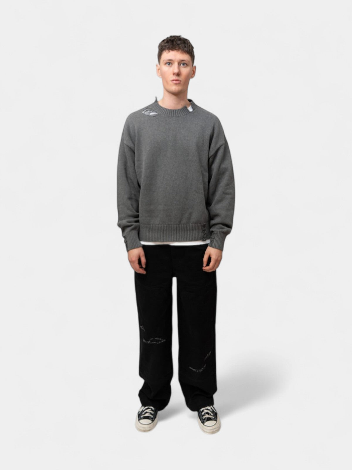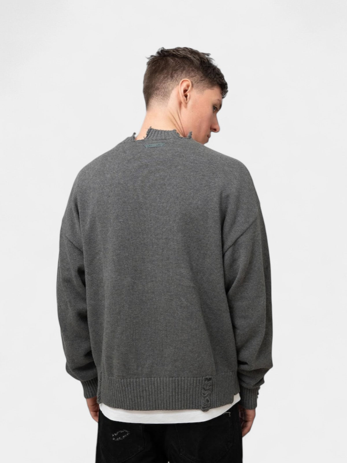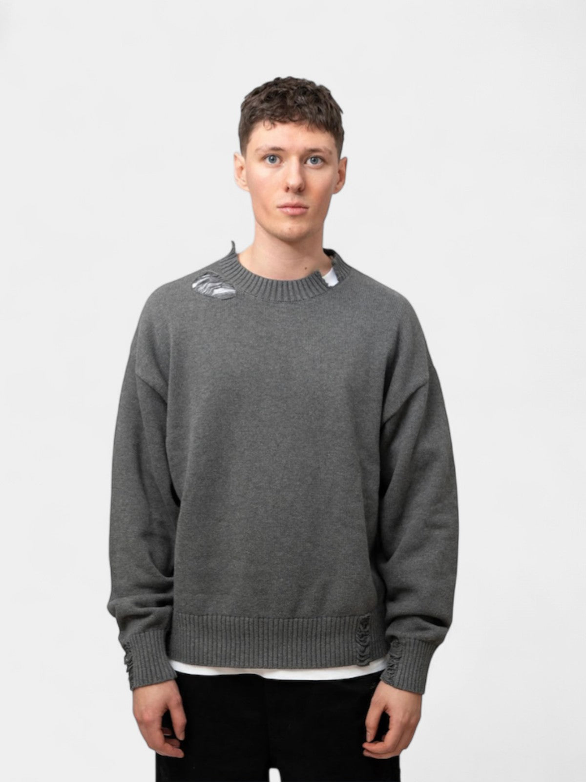 Giv dit look et råt og unikt touch med LauLau’s grå distressed sweater. Med nøje udvalgte slidte detaljer og en afslappet pasform skiller denne sweater sig ud med sit cool, vintage-inspirerede design. Den bløde bomuldsblanding sikrer komfort hele dagen, mens den grå farve gør den let at style til både jeans og bukser.