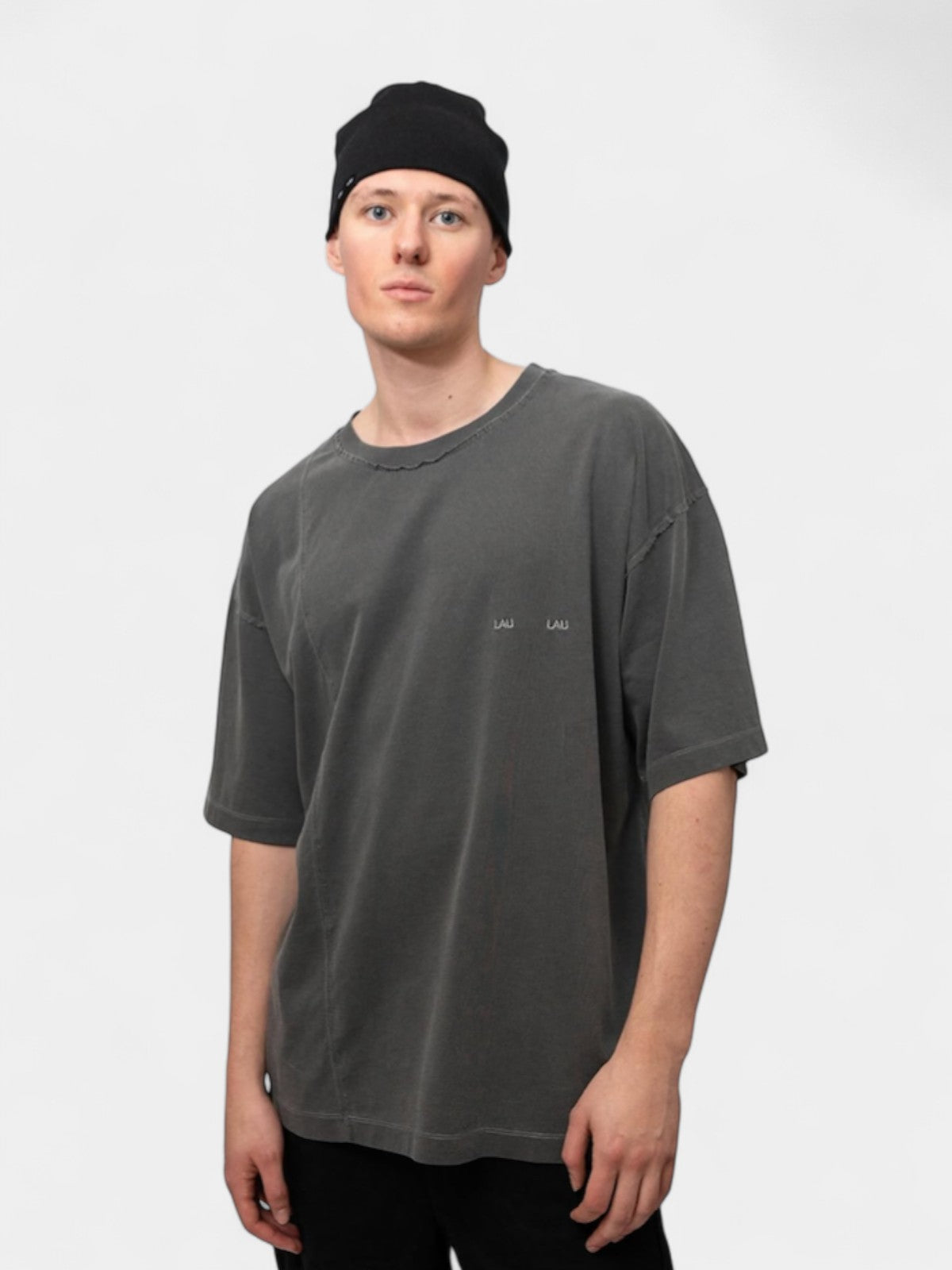 Den minimalistiske æstetik understreges af den grå og et diskret "LAU" logo placeret på brystet. De korte og brede ærmer bidrager til den afslappede stil og giver ekstra bevægelsesfrihed. T-shirten er perfekt til hverdagsbrug, streetwear eller en casual stil og kan nemt kombineres med både jeans og sweatpants for et stilrent udtryk. En essentiel tilføjelse til enhver garderobe.