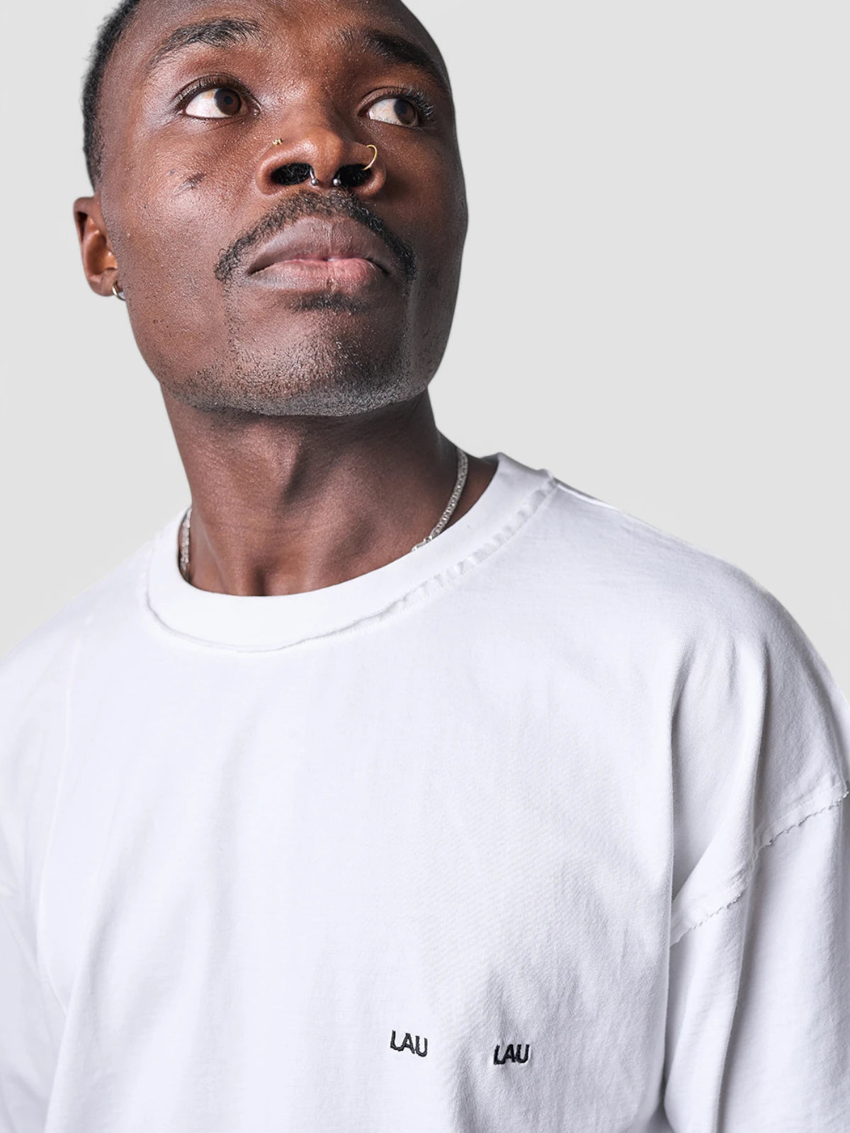 Den minimalistiske æstetik understreges af den dybsorte farve og et diskret "LAU" logo placeret på brystet. De korte og brede ærmer bidrager til den afslappede stil og giver ekstra bevægelsesfrihed. T-shirten er perfekt til hverdagsbrug, streetwear eller en casual stil og kan nemt kombineres med både jeans og sweatpants for et stilrent udtryk. En essentiel tilføjelse til enhver garderobe.
