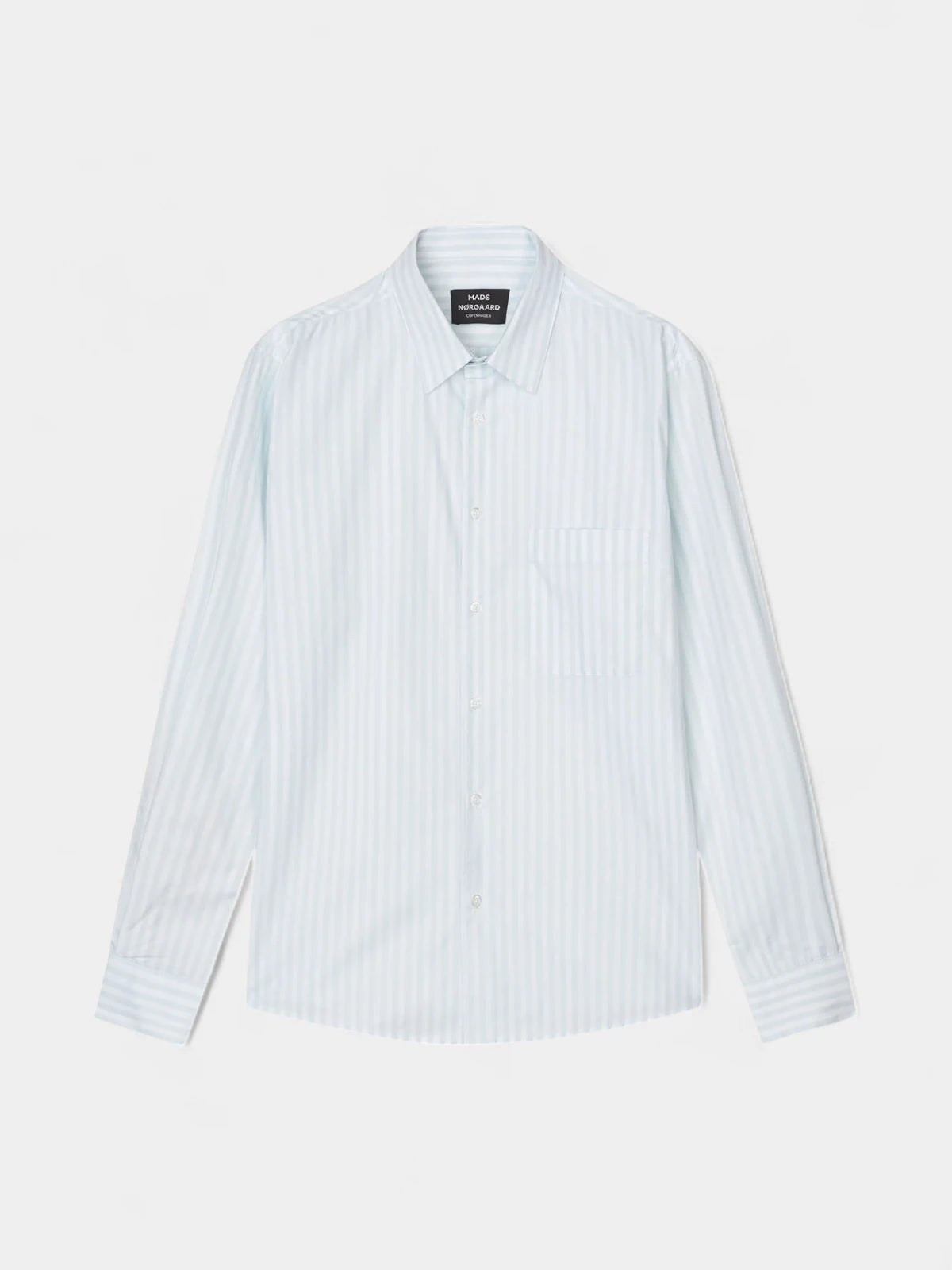Prime Cotton Poplin Sune Shirt fra Mads Nørgaard i farven Ballad Blue er en stilren og alsidig skjorte lavet af 100% økologisk bomuld. Skjorten har en klassisk og regulær pasform med et lige snit, der giver både komfort og et elegant udtryk. Den er designet med en traditionel flipkrave, en enkelt brystlomme og små diskrete knapper, som tilføjer et tidløst touch. Det er en skjorte, der egner sig godt til både hverdagsbrug og mere formelle lejligheder