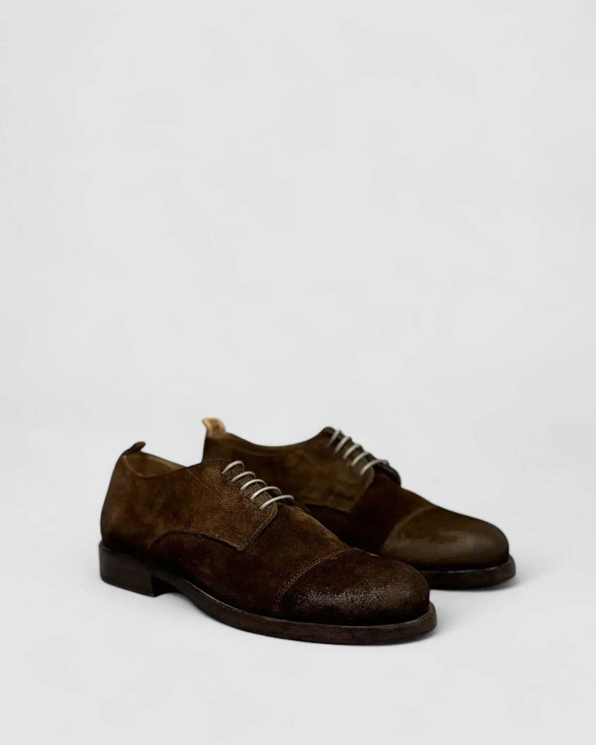Allacciata Suede Shoes - Brown er et par italienske sko i ruskind fra italienske Moma. Alle sko og støvler fra Moma er håndlavede! Hvert eneste par har derfor fået en stor mængde kærlighed, og det kan også ses og føles på kvaliteten. Man glider nærmest ned i skoen - glemt alt om vabler, det kommer du ikke til at døje med, hvis du anskaffer dig et par Allacciata Uomo Shoes!