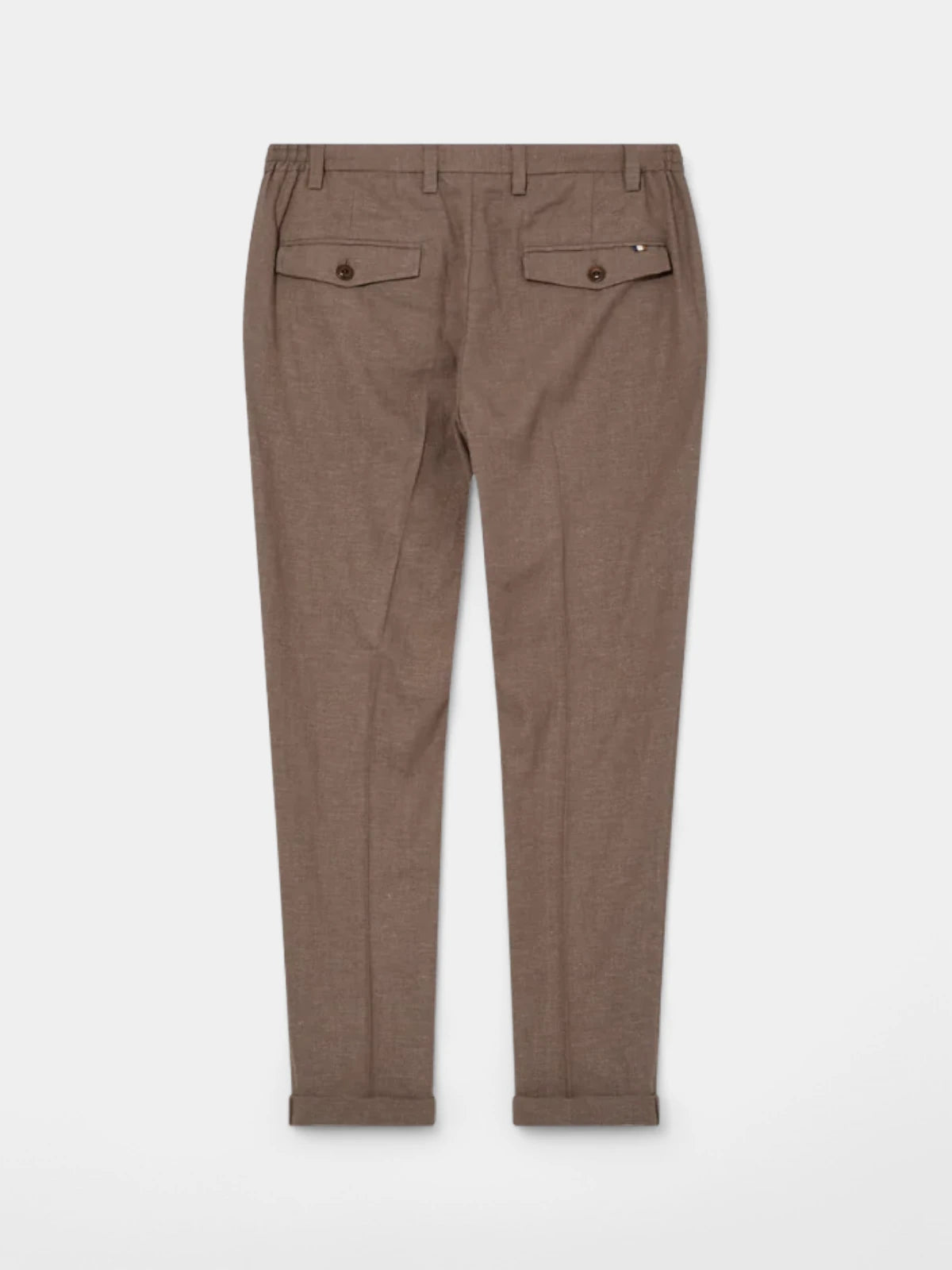 Disse hørbukser er uundværlige i sommervarmen. Fremstillet i en let hør- og viskoseblanding. Designet i en regulær pasform med middel talje og elastisk linning med snører, så du frit kan tilpasse pasformen. Brug dem gerne til en T-shirt for et afslappet sommerlook eller sammen med vores matchende hørskjorte for et mere sammensat look. Et essentiel basisdel i enhver herregarderobe.
