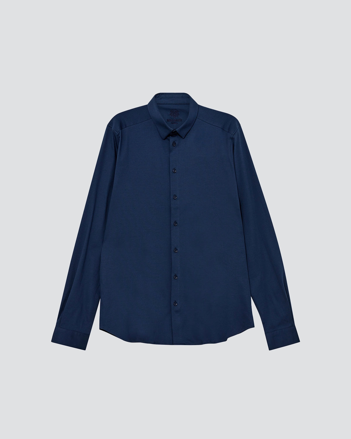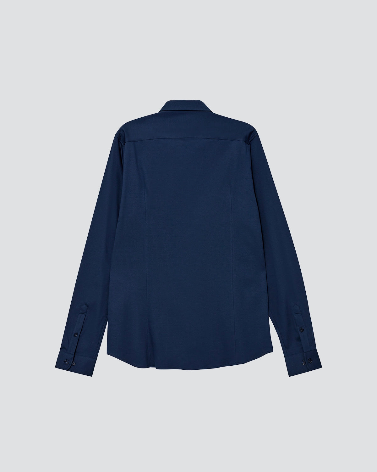 Denne skjorte har en tætsiddende silhuet med knaplukning, manchetknapper og en skjortekrave med skjult knaplukning. Ved at benytte en dobbeltstrikket bomuldskvalitet, får du en stærkere, mere strækbar og holdbar skjorte end ved en normal jersey. Skånsom mod huden og med maksimal bevægelsesfrihed og komfort.