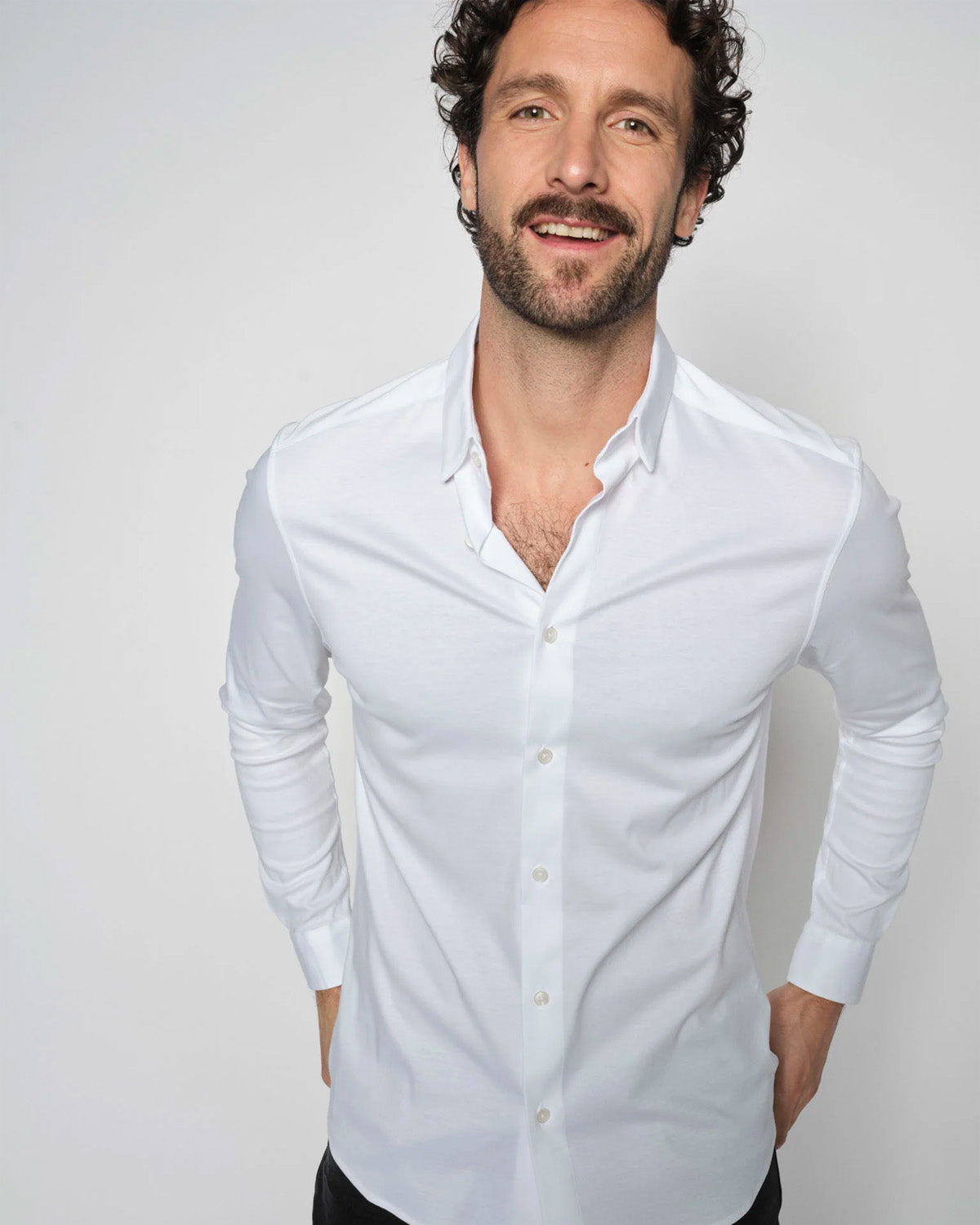 Marco Crunch Jersey Shirt - White er en klassisk herreskjorte fra Mos Mosh Gallery.
