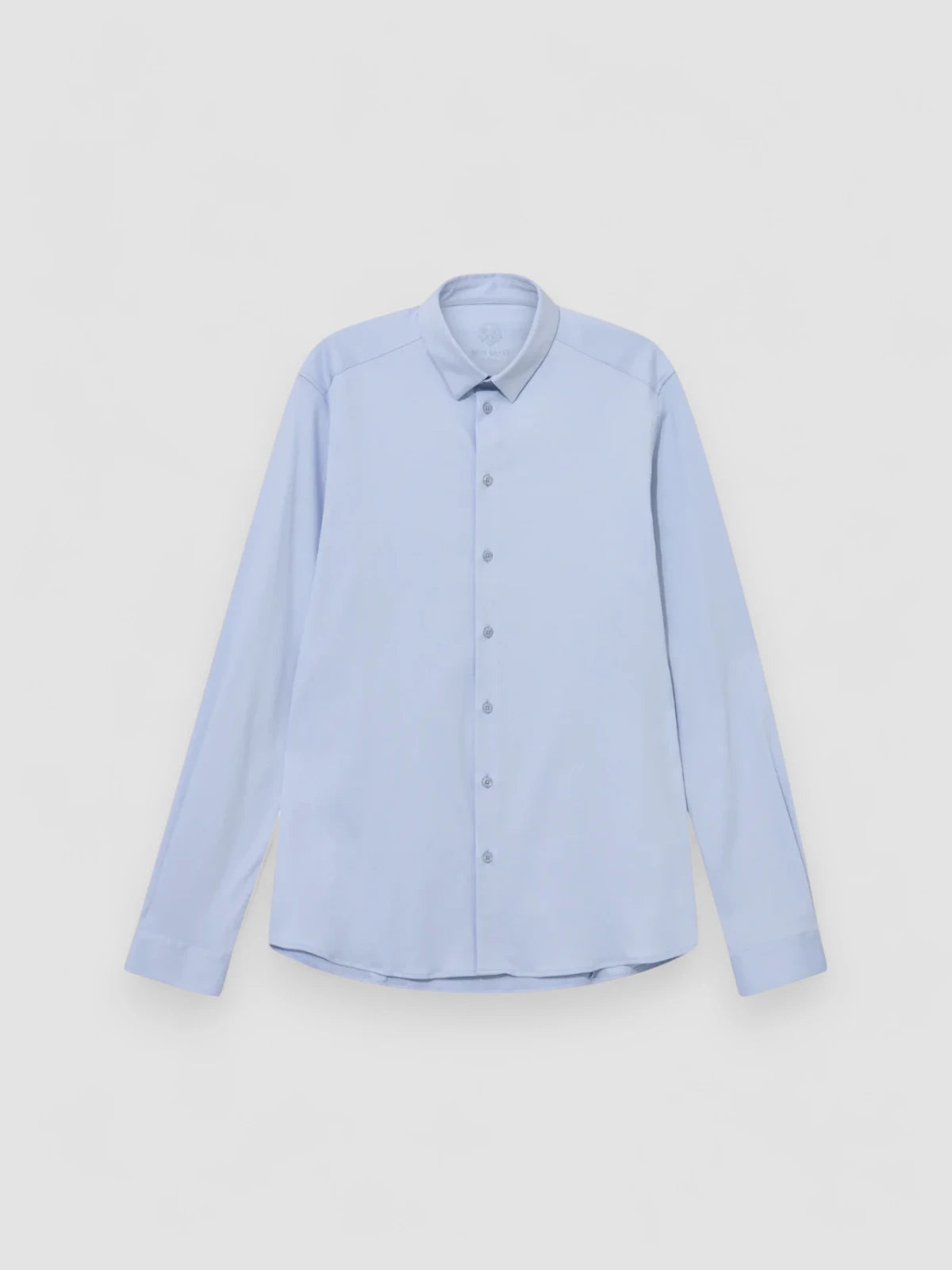 Denne skjorte har en tætsiddende silhuet med knaplukning, manchetknapper og en skjortekrave med skjult knaplukning. Ved at benytte en dobbeltstrikket bomuldskvalitet, får du en stærkere, mere strækbar og holdbar skjorte end ved en normal jersey. Skånsom mod huden og med maksimal bevægelsesfrihed og komfort
