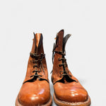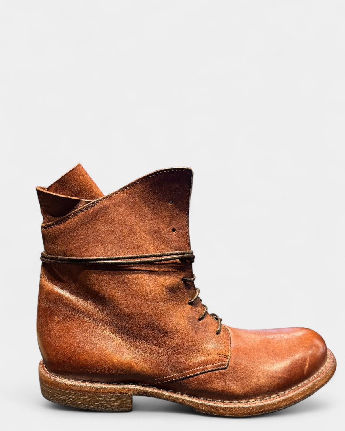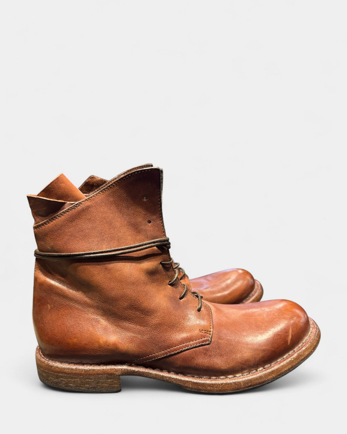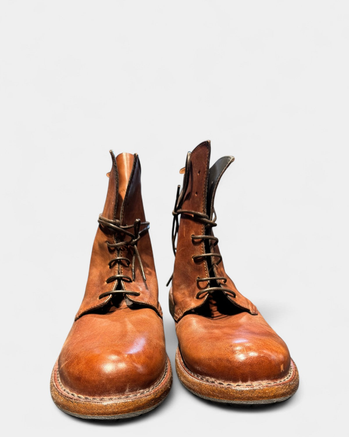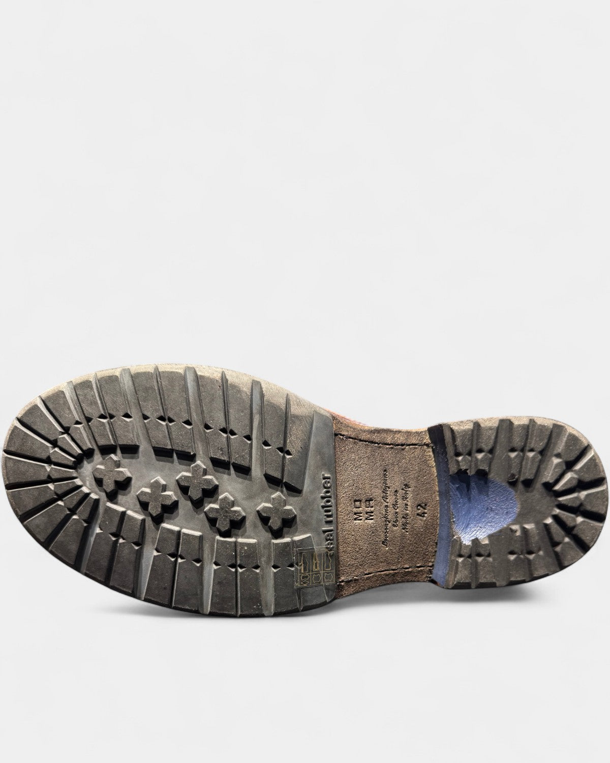 Tronchetto Kurni i farven Copper fra MoMa er en karakteristisk støvle fremstillet i blødt, naturligt garvet læder med en varm kobberfarvet tone. Det enkle design kombinerer et rustikt og håndlavet udtryk med moderne komfort. Den rå finish og let afrundede snude giver støvlen et autentisk og tidløst look. Med sin solide lædersål og klassiske snørelukning er Tronchetto Kurni et perfekt valg til dig, der værdsætter italiensk kvalitet og håndværk. MoMa er generelt store i størrelsen, så vi anbefaler at gå en størrelse ned i forhold til din normale størrelse.