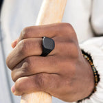 Signet Ring 16 mm Classic i sort er en tidløs og maskulin ring, der kombinerer et klassisk design med moderne detaljer. Den brede ring er fremstillet i holdbart 316L rustfrit stål og har en mat sort PVD-belægning, der giver et diskret men kraftfuldt look. Den afrundede inderside sikrer en behagelig pasform, mens den brede overflade giver ringen et markant udtryk. Perfekt til dig, der ønsker et smykke, der skiller sig ud og tilfører kant til dit outfit.