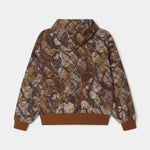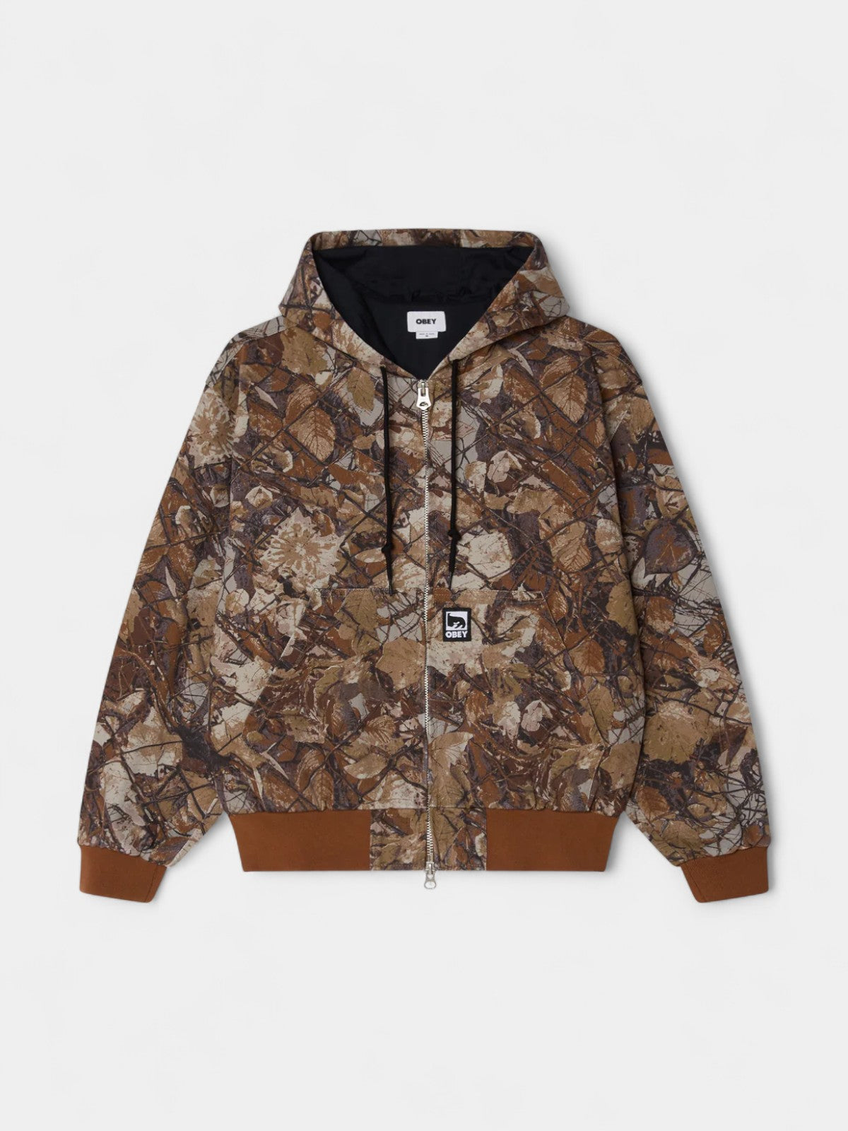 Glen Zip Up Jacket fra Obey er lavet i kraftigt denim (13,5 oz) af 100 % bomuld og har en relaxed pasform. Jakken lukkes foran med en to-vejs metal-lynlås og har en tre-delt hætte med rund snor. Designet inkluderer påsyede lommer, ribkant ved ærmer og kant, og jakken er fuldt foret. Motivet “Fence Camo Multi” giver den et markant udtryk.