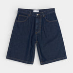EDWIN Worker Short i Dark Marble Wash er et par løstsiddende denimshorts fremstillet i kraftig 14,6 oz Arctic Blue denim af 100 % bomuld, der giver en slidstærk og autentisk kvalitet. Den mørke marble wash-behandling skaber et markant, vintage-inspireret udtryk med et dybere og mere struktureret farvespil, som giver shortsene et råt og karakterfuldt look. Designet er udstyret med lynlåsgylp og klassiske metaldetaljer i sølvfarve, der understreger den klassiske denimstil, mens en signatur polyurethan-patch på baglinningen og et vævet EDWIN-label ved møntlommen fuldender det ikoniske brandudtryk.