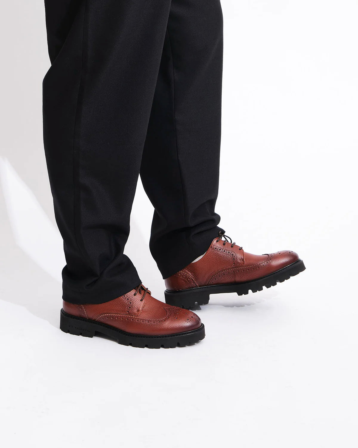 Skoene har en overdel i læder, med fede detaljer! Som ST Valentin selv skriver, er brogue'en oprindelig lavet til at kunne håndtere det våde og barske skotske højland - den er altså super solid, men stadig stilet.