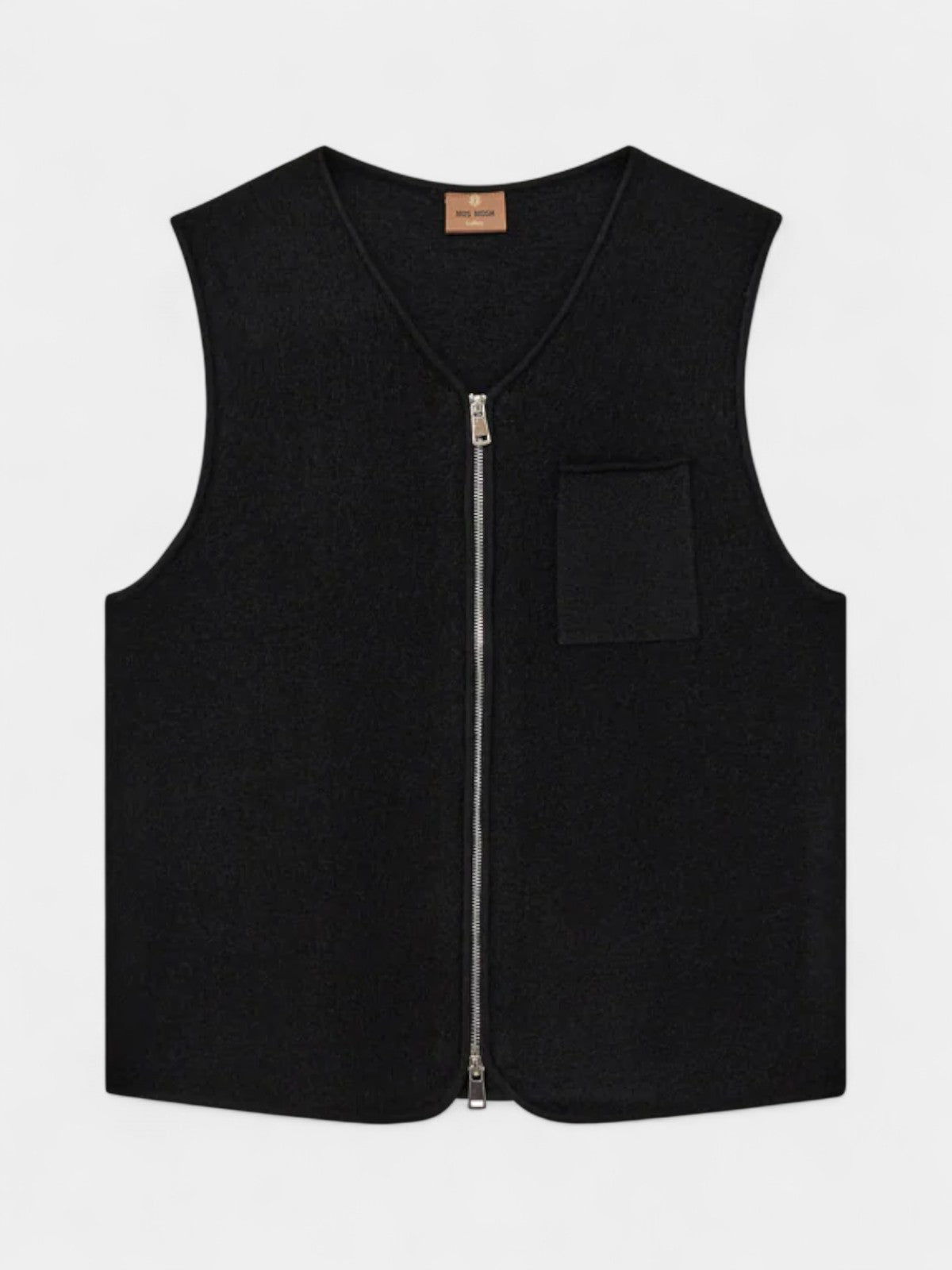 Denne uldvest med lynlås giver et skarpt, moderne lag til garderoben. Med strømlinet silhuet, brystlomme og ren lukning balancerer den praktik med elegance. Brug den over en hvid tee eller under en blazer for alsidig og raffineret hverdag.