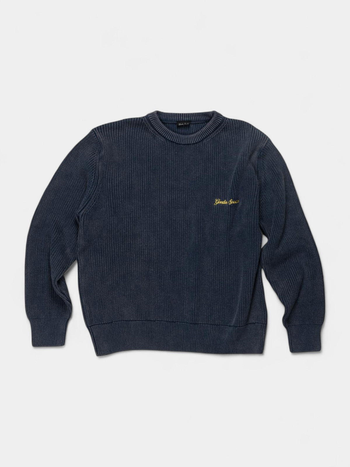 Washed Insignia Premium Knit er en navyblå crewneck, der kombinerer klassisk design med moderne detaljer. Den boxy pasform giver et afslappet og stilrent udtryk, mens det kontrastfarvede broderi på brystet tilføjer et grafisk touch. Fremstillet i 100 % bomuld i Portugal, tilbyder denne striktrøje både komfort og holdbarhed. Perfekt til at tilføre dit outfit et personligt præg, uanset om du er på farten eller slapper af i weekenden.