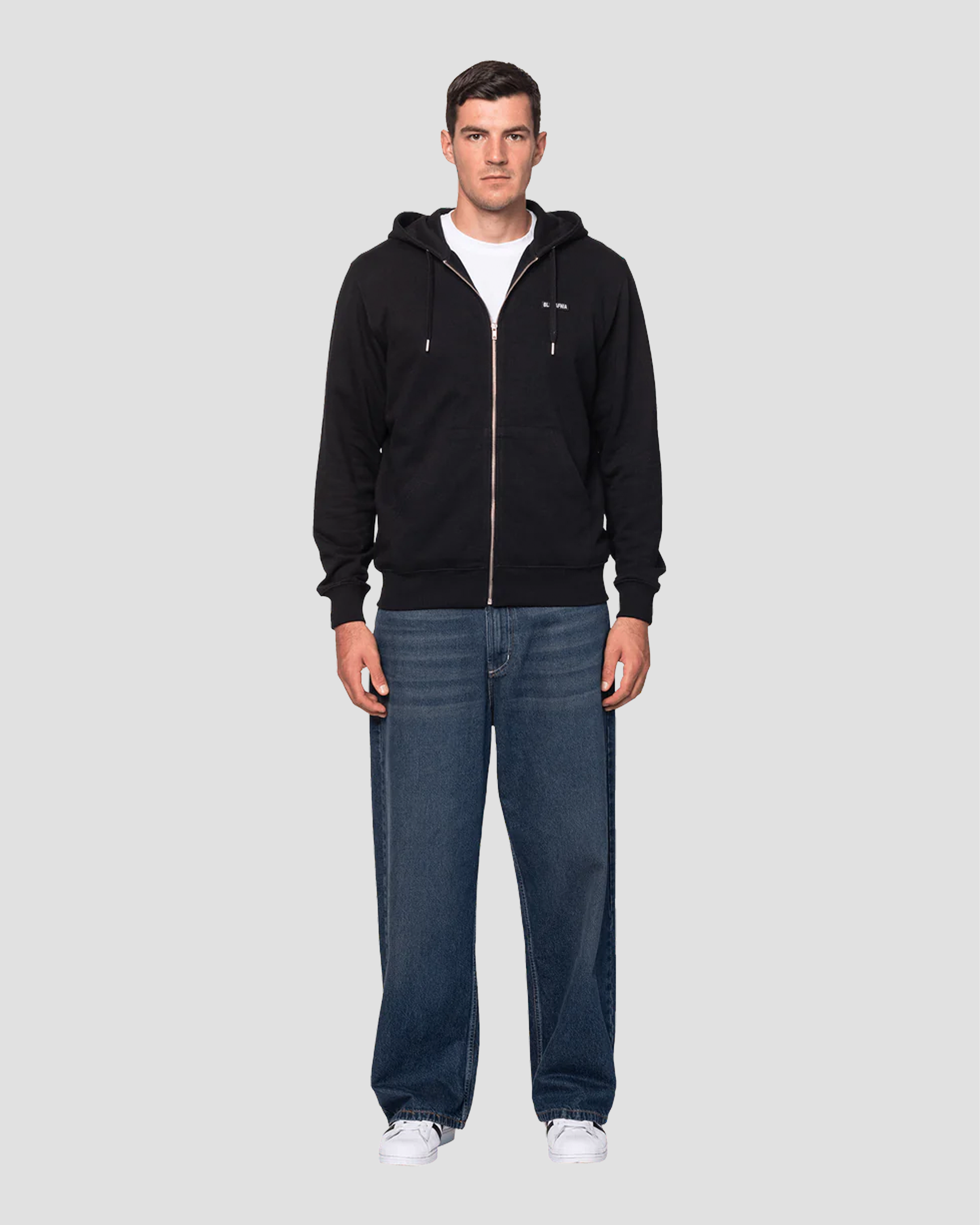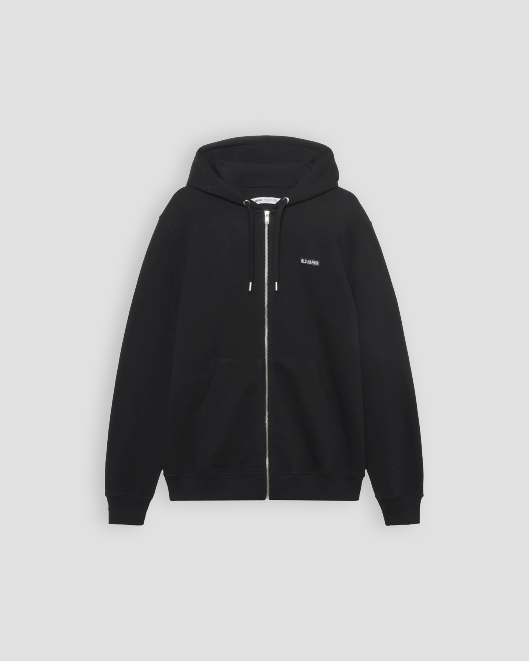 Essential hættetrøje med lynlås, prydet med BLS Hafnia-logo på fronten
