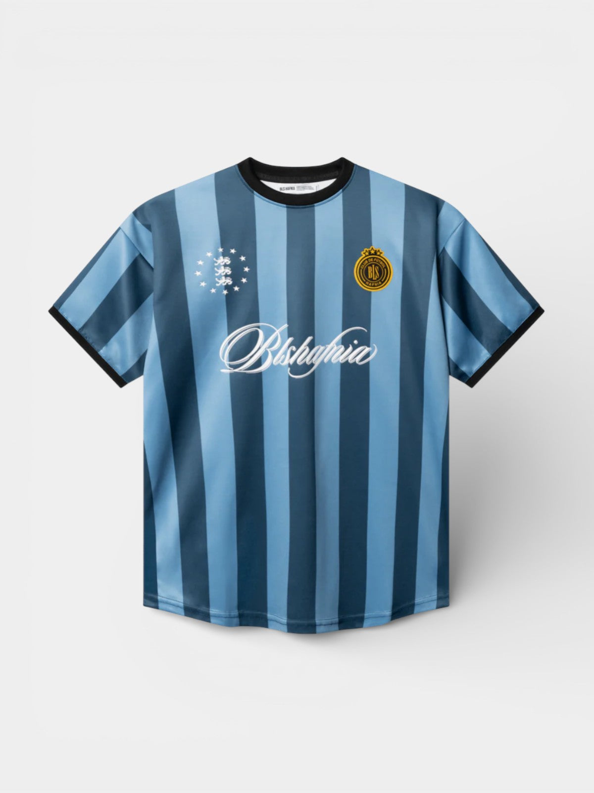 Florentina Soccer Jersey i blå er en markant nyfortolkning af klassisk fodboldæstetik, der kombinerer retro attitude med et moderne streetwear-udtryk. Trøjen er designet med en bevidst oversized silhuet, som giver ekstra struktur, tyngde og visuel tilstedeværelse i dit outfit. Det stilrene design og de retroinspirerede detaljer gør den til et statement-piece, der både fungerer til hverdagsbrug og som en del af et mere fashion-forward look. Den er fremstillet i let og slidstærk polyester og anbefales vasket inden brug for optimal komfort og finish.