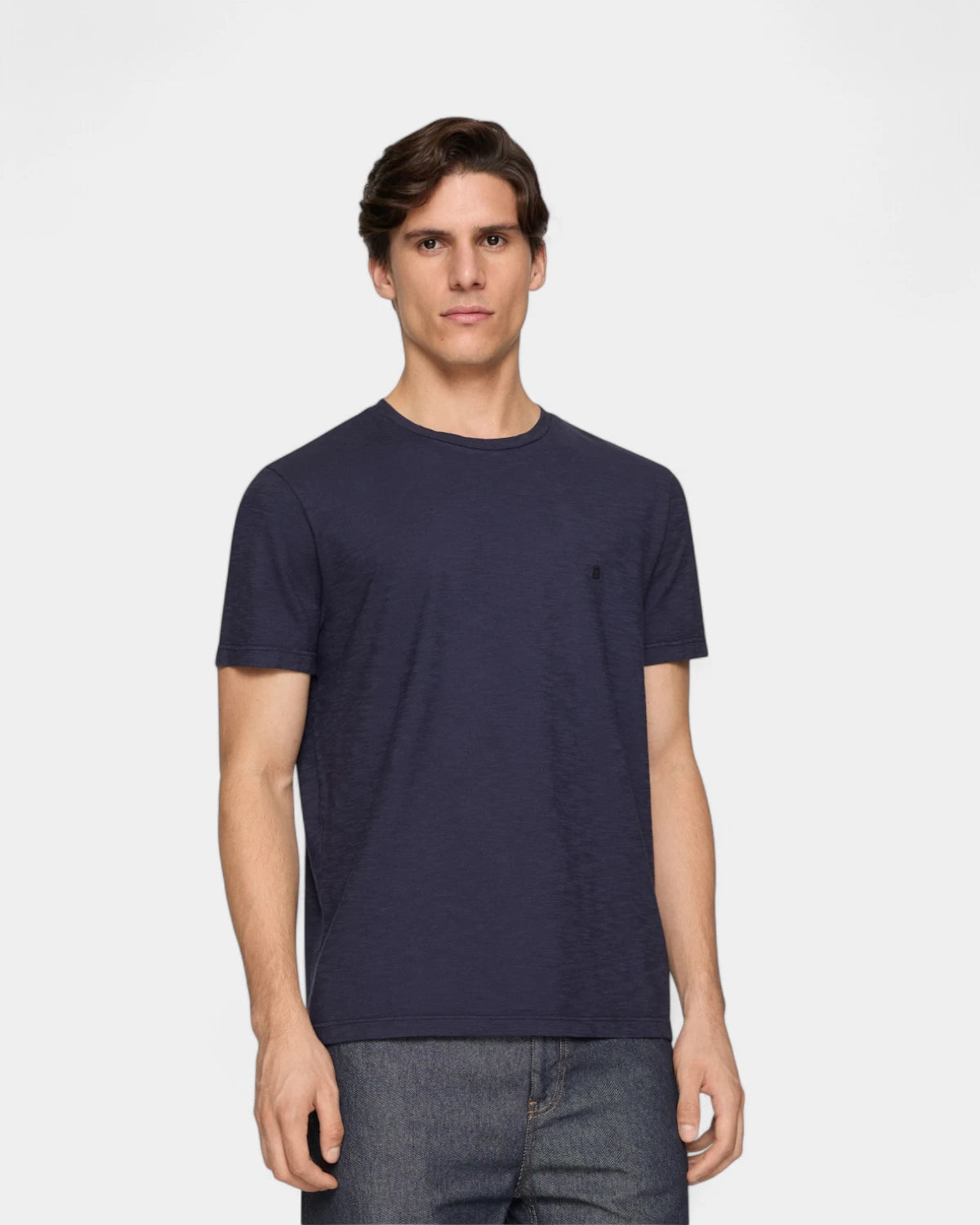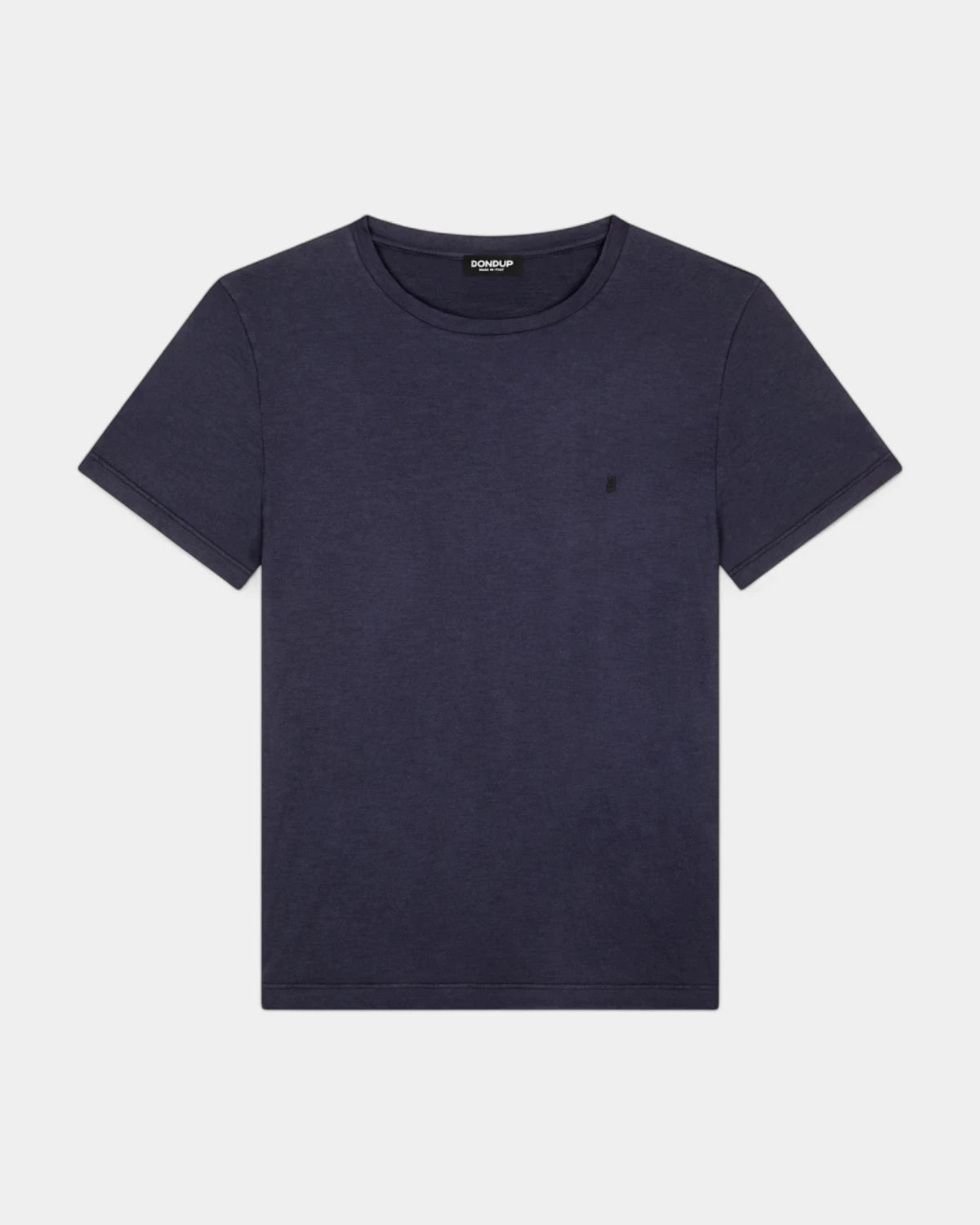 Denne T-shirt har en regular fit og er lavet af blødt slub-jersey i 100 % bomuld, hvilket giver en let og behagelig pasform. Den tidløse navy blå farve og den runde hals gør den til en alsidig basistøje, som kan styles til både afslappede og mere formelle looks. Den enkle design med korte ærmer og et diskret logo på brystet gør den til et stilfuldt valg til hverdagen. T-shirten er fremstillet i Italien og tilbyder både komfort og kvalitet.