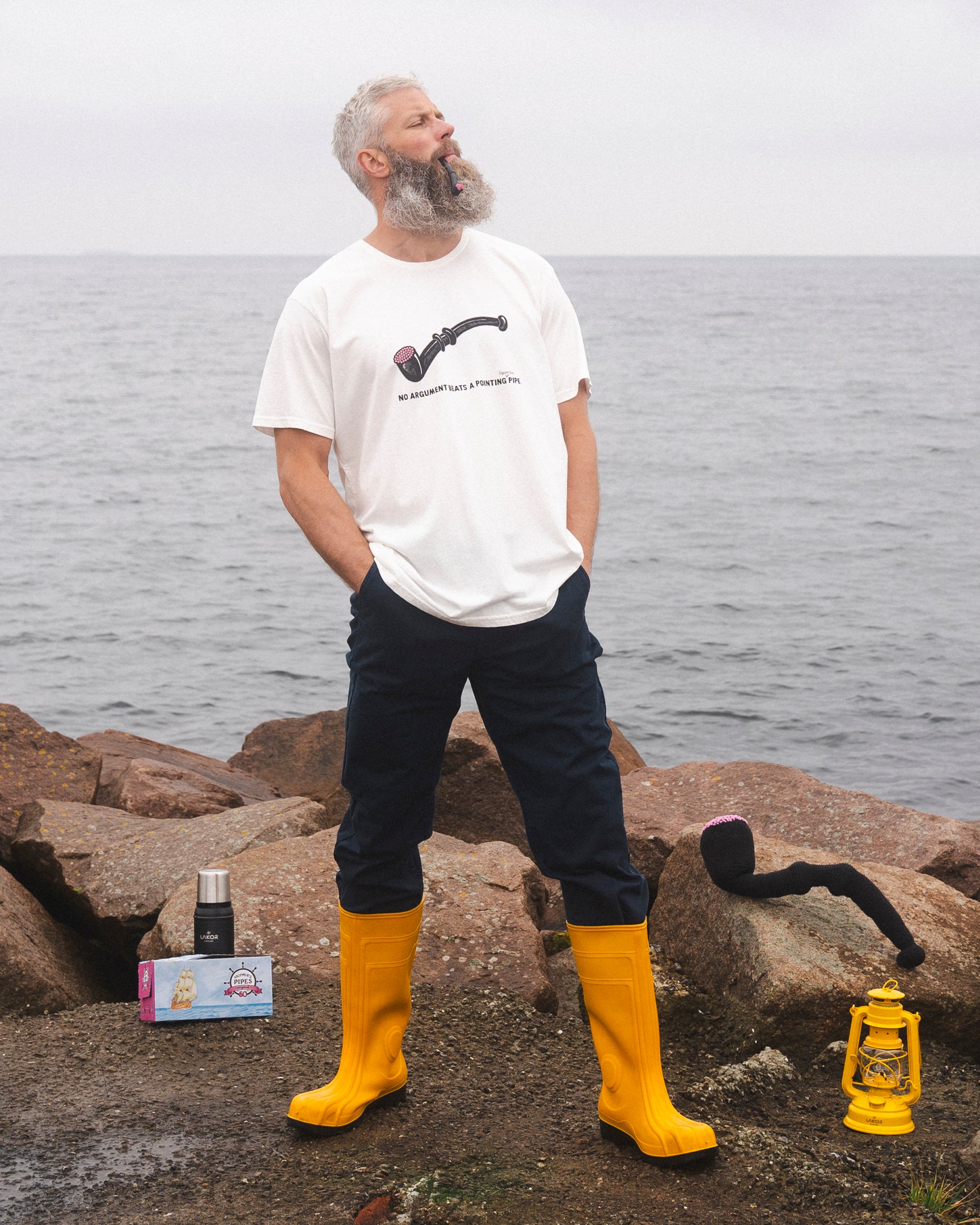 Lakridspibe t-shirten er en del af Lakors 10-års Jubilæumskollektion, som markerer venskabet mellem Skipper's Pipes og LAKOR.