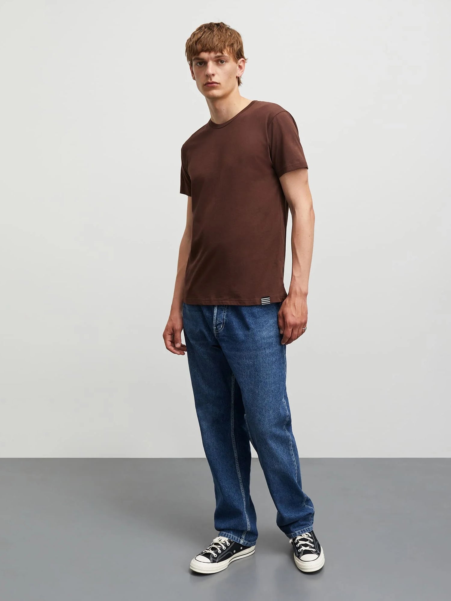 Den varme og dybe brunlige Chicory Coffee nuance tilføjer et elegant touch, der nemt kan kombineres med andre styles. T-shirten fungerer både alene og som en del af et lagdelt outfit, eksempelvis under en skjorte eller blazer, og er et perfekt valg til enhver garderobe.