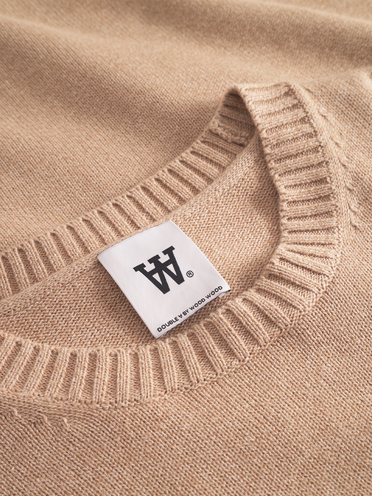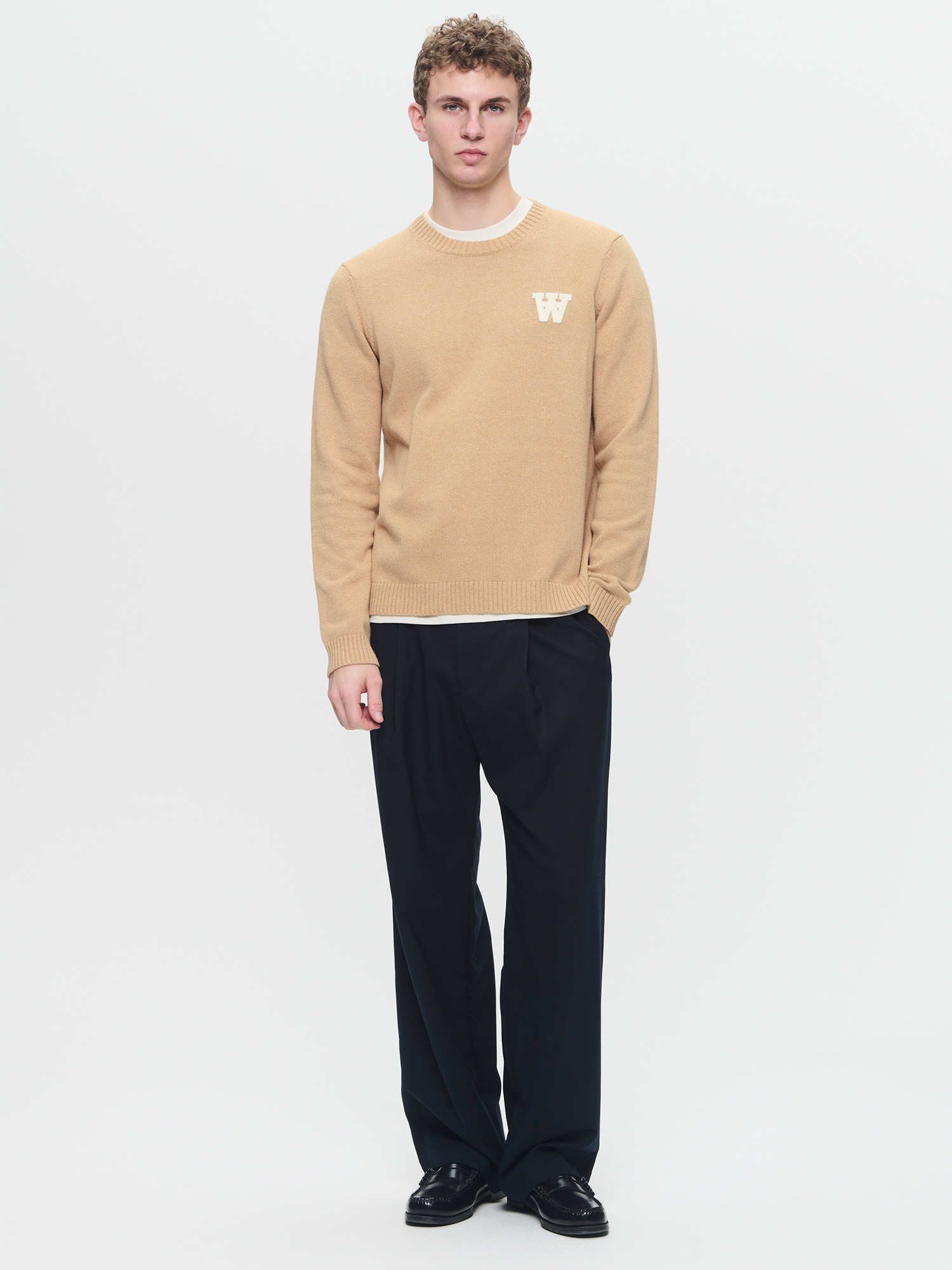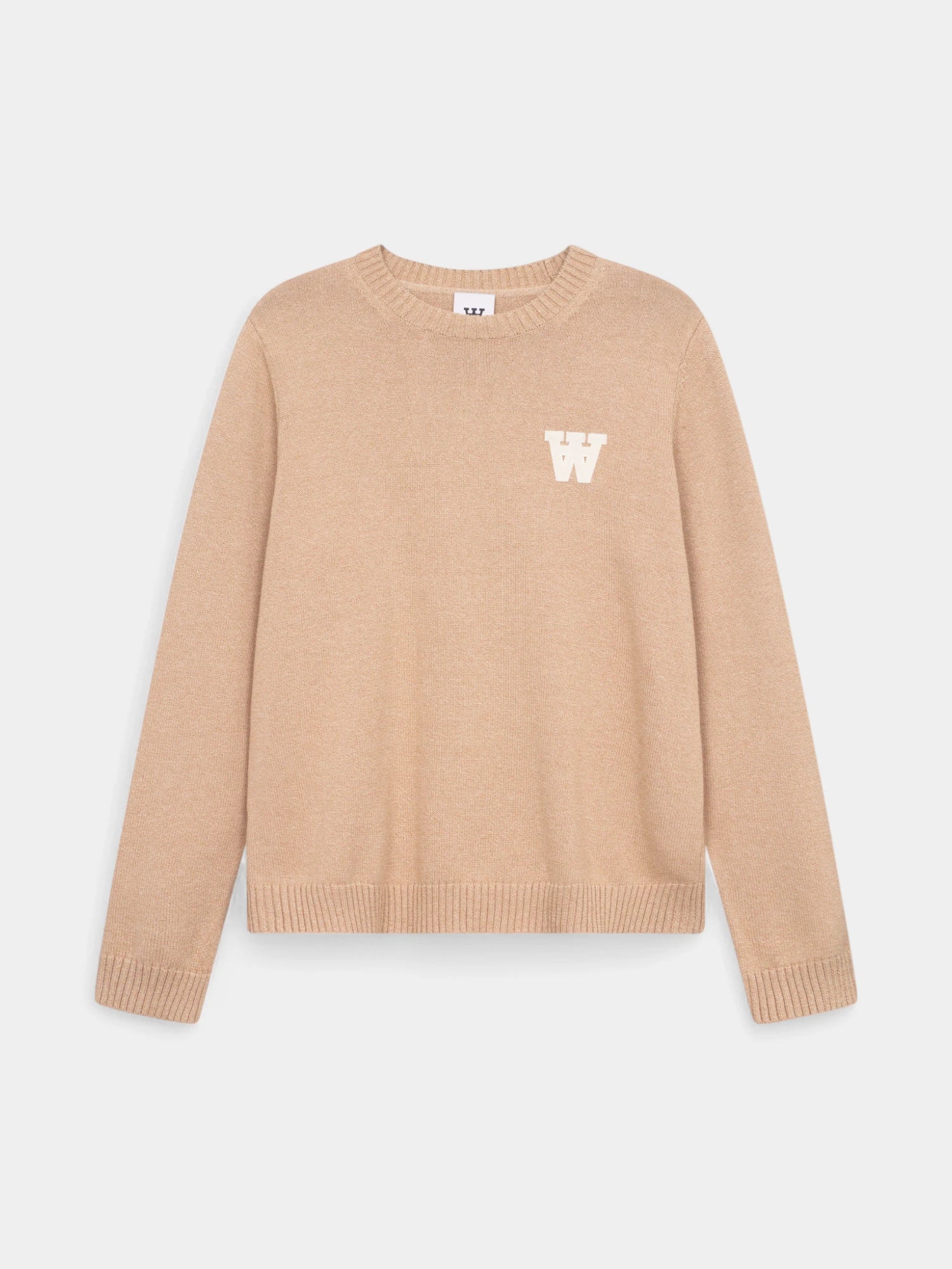 Wood Woods Tay Knit i farven "Curds & Whey" er en klassisk pullover, der kombinerer komfort og stil. Fremstillet af blødt materiale, tilbyder den en behagelig pasform med rund halsudskæring og ribkanter. Det minimalistiske design gør den alsidig og velegnet til både hverdagsbrug og mere formelle anledninger.