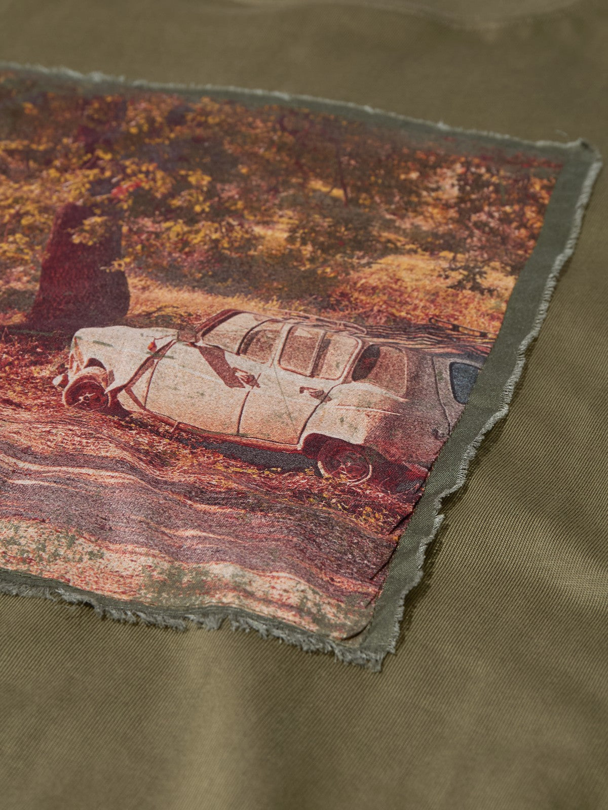 Calm Tee fra MOS MOSH Gallery er en afslappet T-shirt i en blød bomuldskvalitet med et kunstnerisk frontprint, der tilfører et personligt og stemningsfuldt udtryk. Den olivengrønne farve danner en rolig base, mens det vintageinspirerede motiv med bilen under træernes varme lys skaber dybde og karakter. T-shirten er designet med klassisk rund hals, korte ærmer og en komfortabel pasform, der gør den nem at style til både jeans, shorts eller under en let jakke. Et afslappet statement-piece med et kreativt twist, perfekt til en moderne og ubesværet garderobe.
