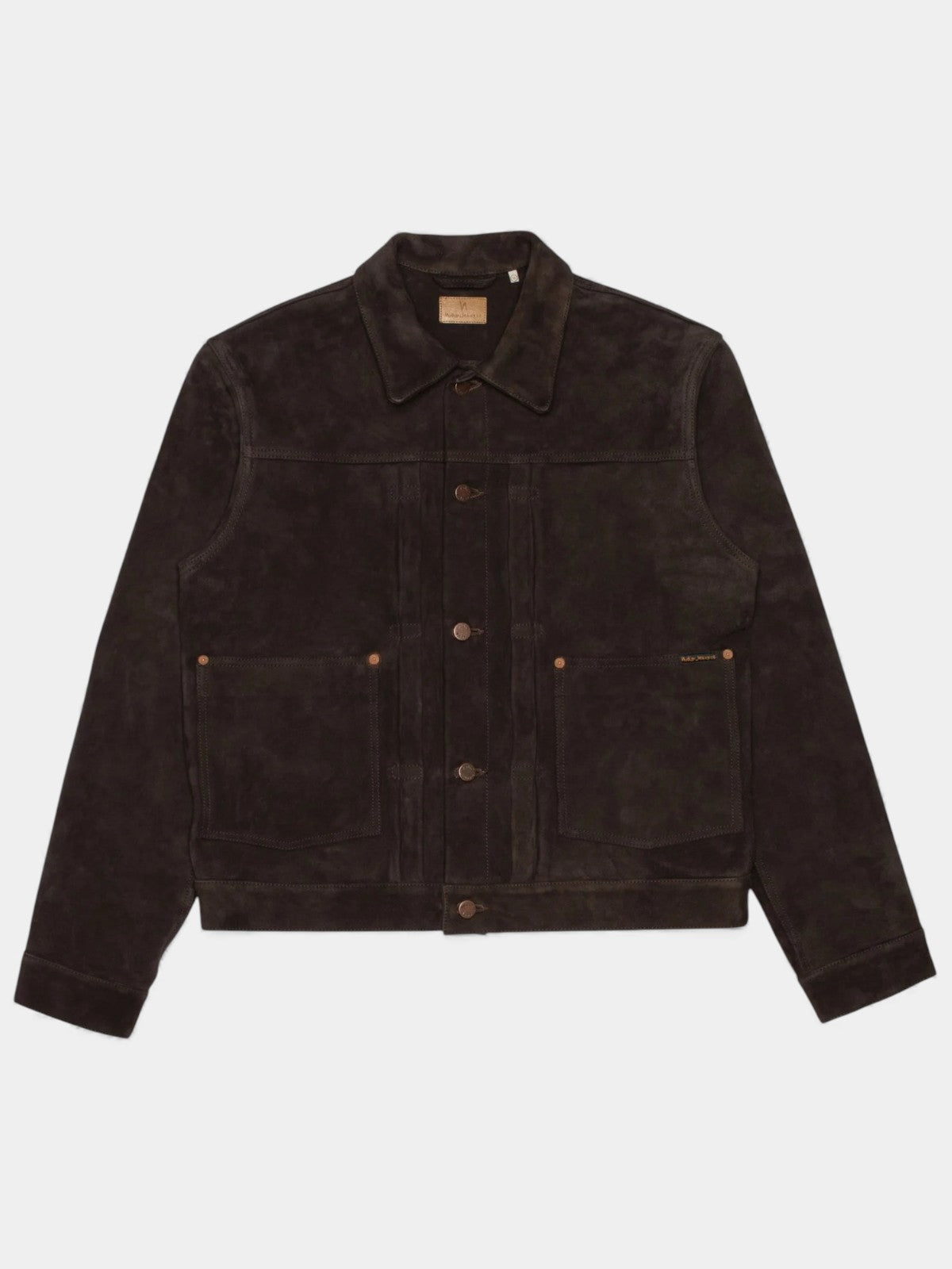 Dante II Suede Jacket Dark Brown fra Nudie Jeans er en eksklusiv ruskindsjakke fremstillet i utroligt blødt og smidigt gedeskind i en dyb mørkebrun nuance, der giver et varmt og sofistikeret udtryk. Snit og pasform er inspireret af klassiske denimjakker og giver jakken et tidløst, afslappet look med regular fit. Designet byder på lige bærestykke, plisseret front og praktiske patch-lommer, mens front og manchetter lukkes med karakteristiske logo-knapper. De gennemførte detaljer som dobbeltsyede sømme og ærmer med for i genanvendt polyester gør jakken både komfortabel og slidstærk, samtidig med at den bevarer sit elegante udtryk. Det rige farvespil i ruskindet opnås gennem en særlig garvningsproces, som fremhæver materialets naturlige dybde og struktur, og gør jakken til et langtidsholdbart statement-piece i garderoben.