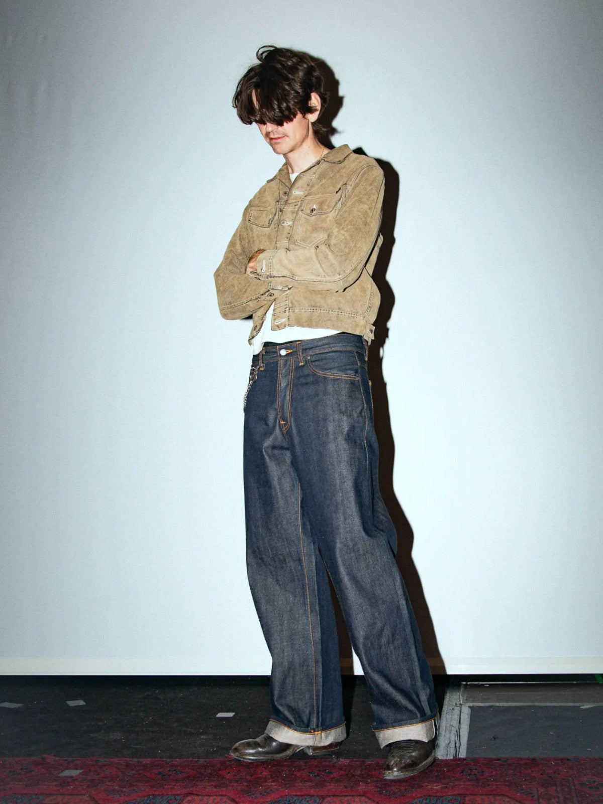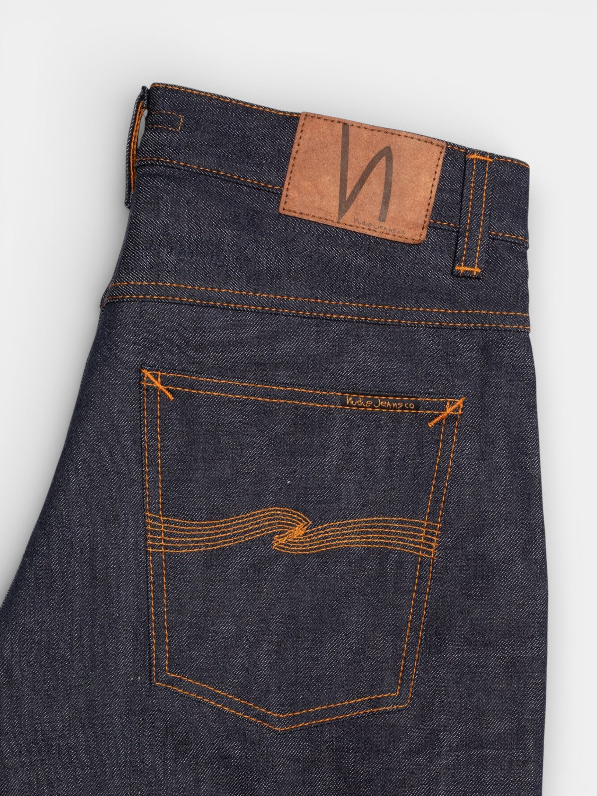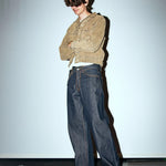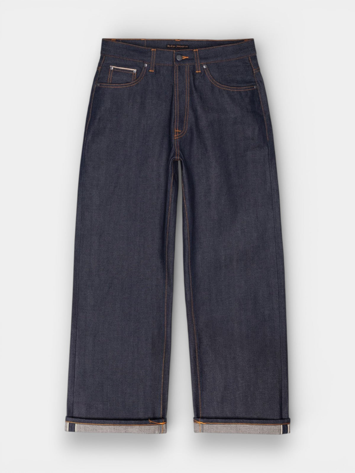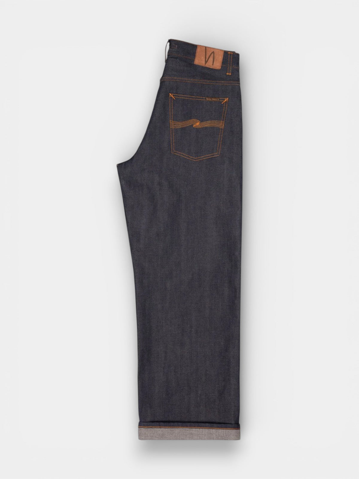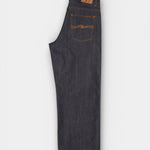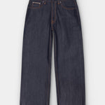 Loud Larry Dry Selvage er et par jeans med en løs pasform, høj talje og bred benåbning, designet til dem, der ønsker både komfort og et markant silhuet. De er lavet af 13,75 oz. Dry Kaihara selvage denim, et stift og tætvævet materiale med karakteristisk slubby tekstur, der fremhæver stoffets rå struktur. Denimstoffet er fremstillet af økologisk bomuld i en rå (untreated) version, hvilket giver jeansene et autentisk og tidløst udtryk, som kun bliver bedre med tiden. Et orange selvedge-ID langs kanten tilføjer et genkendeligt designelement, som sammen med den rå kvalitet understreger den klassiske selvedge-æstetik.