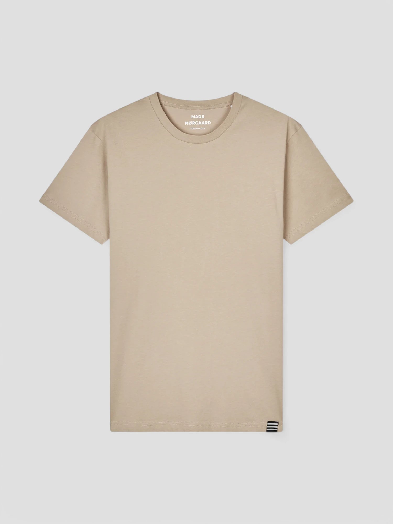 Organic Thor Tee i farven Trench Coat er en klassisk T-shirt fra Mads Nørgaard, fremstillet af 100% blød og let økologisk bomuld. Den har en regular pasform, der falder lige op og ned, med rund halsudskæring og korte ærmer. Den neutrale Trench Coat-farve gør T-shirten alsidig og nem at kombinere med forskellige outfits. Den er en del af Mads Nørgaards Favorite-kollektion, som består af nøje udvalgte produkter, der er pålidelige, tidløse og aldrig går af mode.