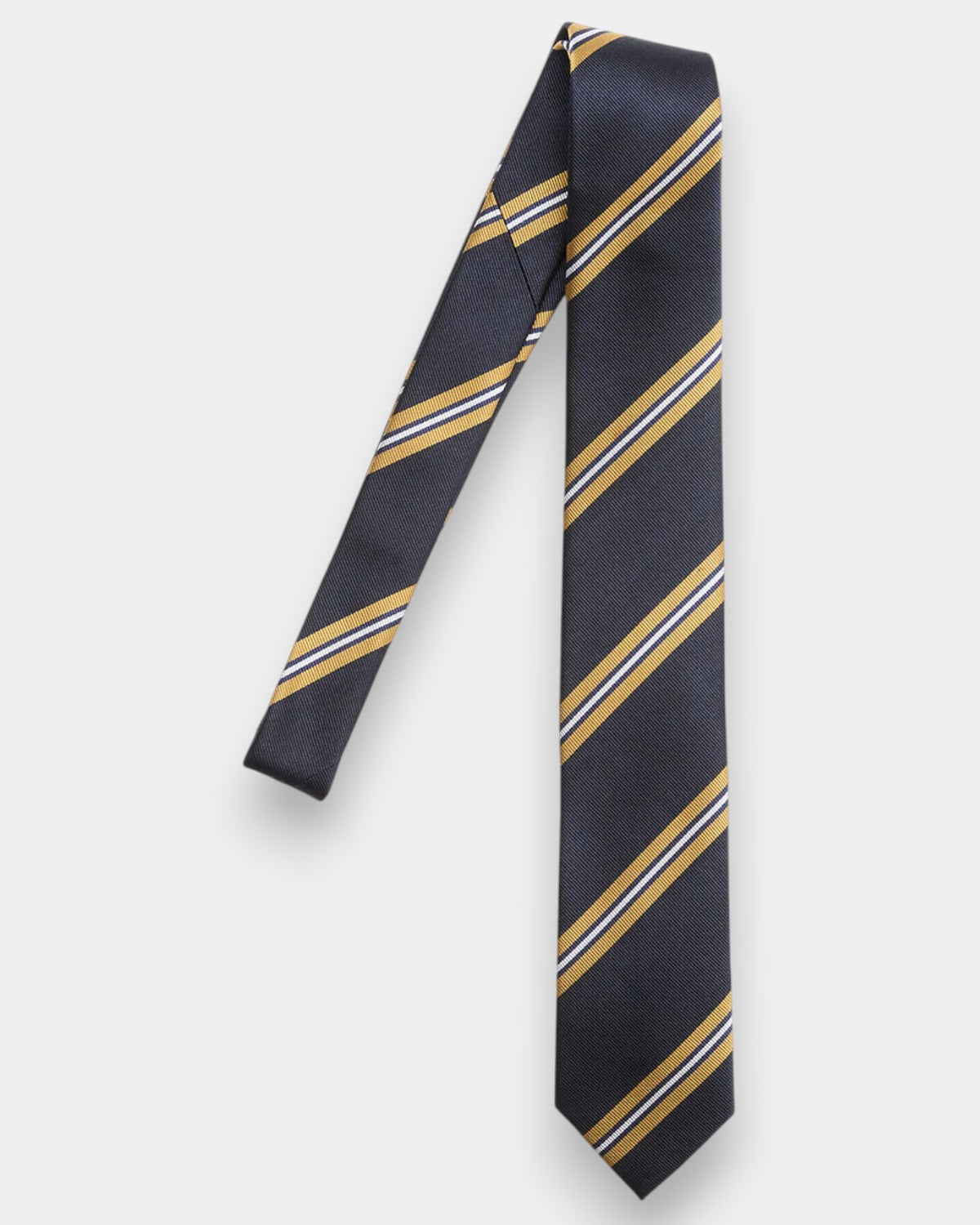 Ponsy Tie fra Blue de Gênes i farven Dark Navy er et klassisk og stilfuldt slips, der tilfører et elegant og gennemført udtryk til enhver garderobe. Slipset er designet med fokus på kvalitet og håndværk, hvilket gør det velegnet til både formelle lejligheder og mere afslappede outfits, hvor du ønsker et velklædt og sofistikeret look. Den tidløse silhuet og det enkle design gør det let at kombinere med skjorter og blazere i både neutrale og mørkere nuancer.