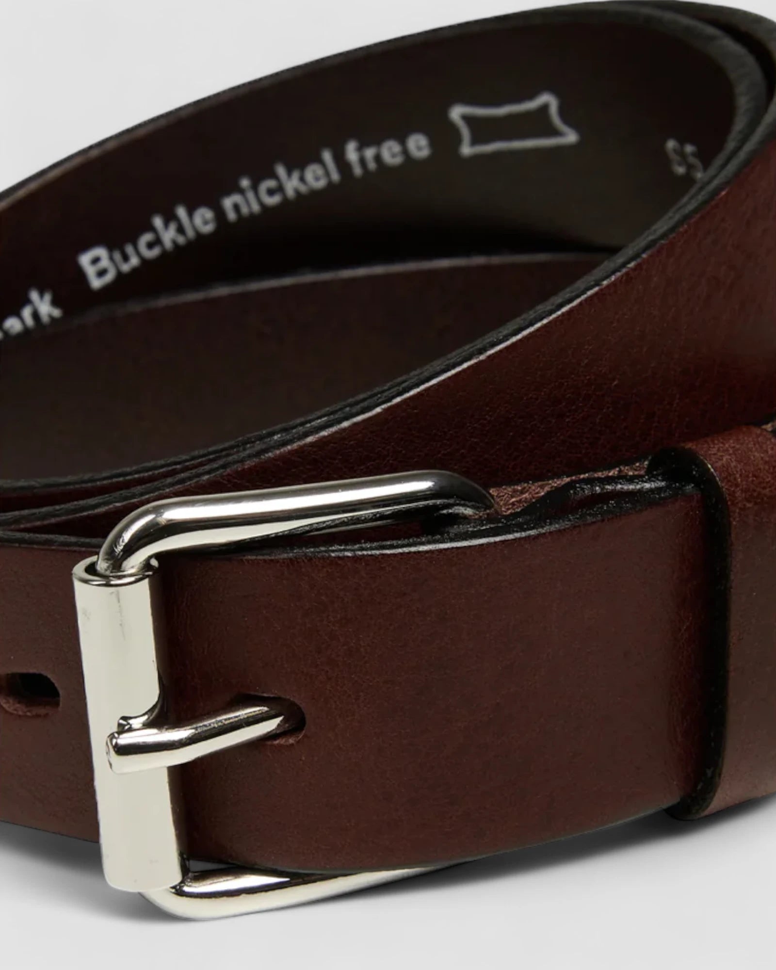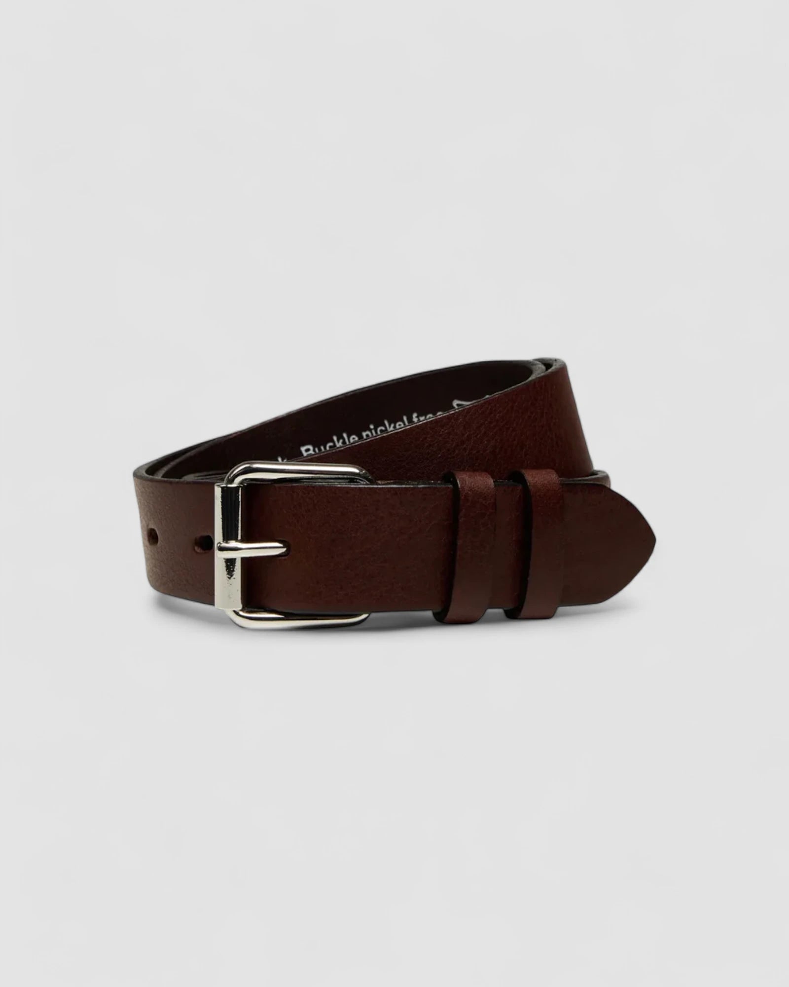 Ringo Belt er et klassisk skåret bælte af 100% glat læder, med et halvgroft, nikkelfrit metalspænde og to læder stropper.
