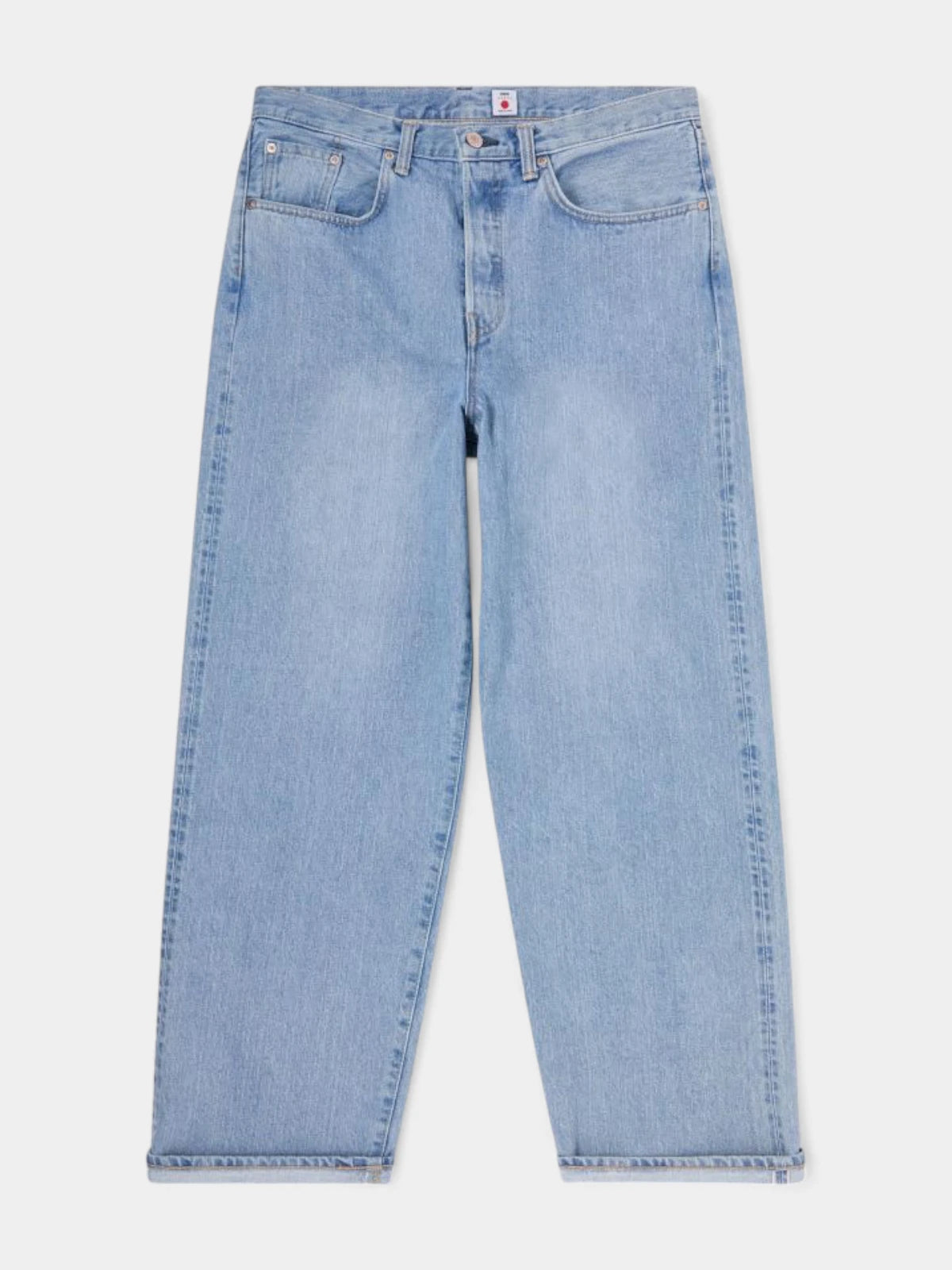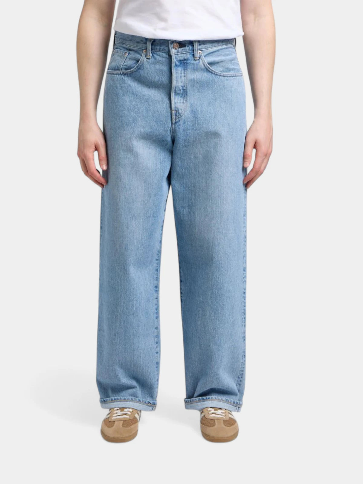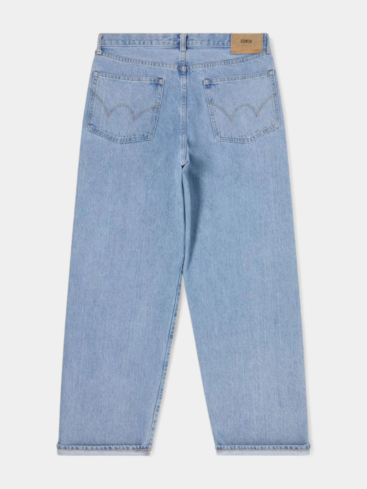 Wide Pant fra Edwin er fremstillet af 14 oz Kurabo Recycle Denim med rød selvage. Designet har en afslappet pasform med en bred silhuet, der giver en moderne og afslappet stil. Den lyseblå vask skaber et brugt look, der tilføjer karakter og autenticitet til stoffet. Klassiske detaljer som fem lommer, skjult knapgylp og subtile kontrastsyninger understreger buksernes tidløse æstetik. Fremstillet i Japan med fokus på kvalitet og bæredygtighed kombinerer disse jeans traditionelt håndværk med moderne materialer, hvilket gør dem til et stilfuldt og langtidsholdbart valg.